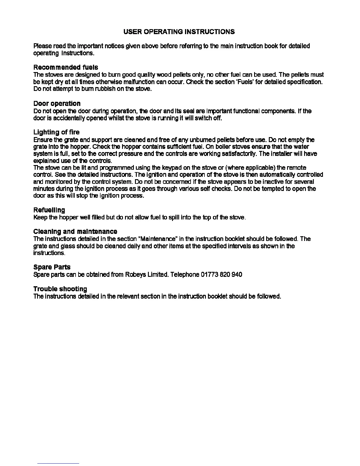 Piazzetta LINE - User Operating Instructions; Recommended Fuels; Cleaning and Maintenance; Trouble Shooting