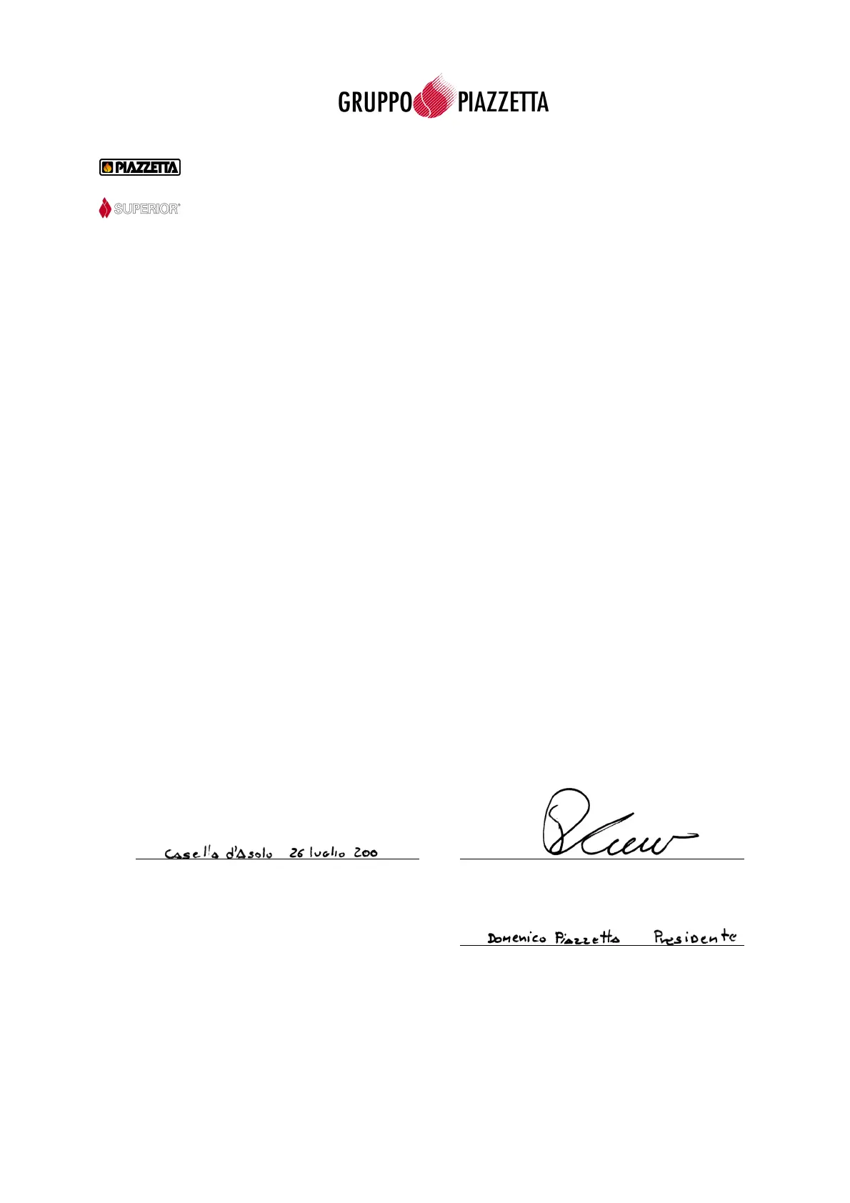GRUPPO PIAZZETTA S.p.A. - 31010 Casella d’Asolo (TV) - Via Montello,22 - Tel.0423/527.1 - Fax 0423/55178 - Fax Uff. Comm. 0423/527250