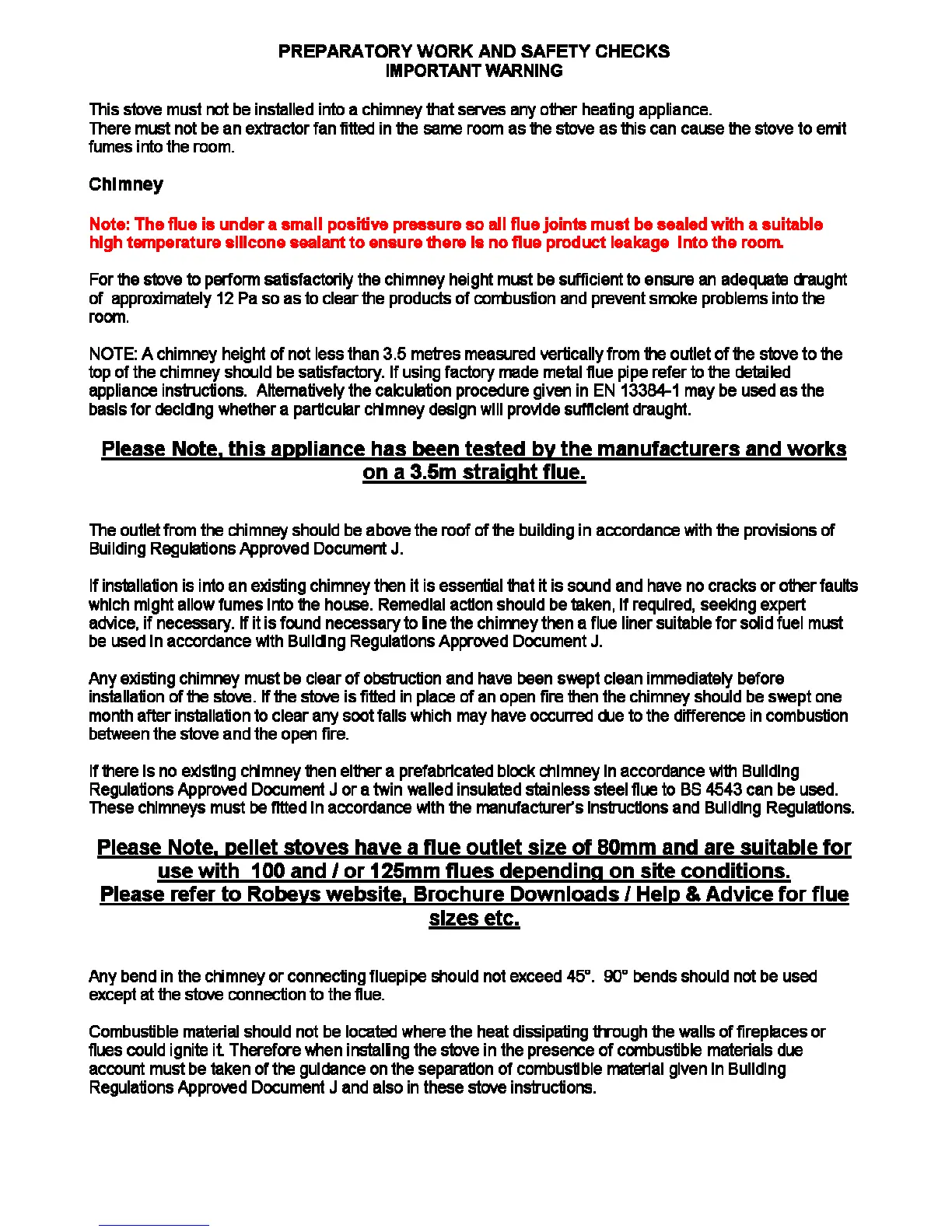 Piazzetta P936 - Preparatory Work and Safety Checks; Chimney Requirements