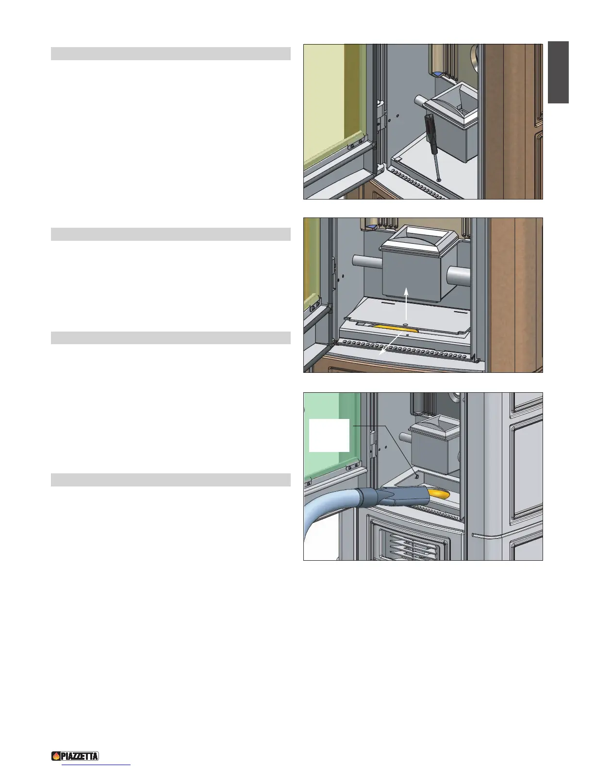 • Use a vacuum cleaner to clean any ash and carbonous deposits