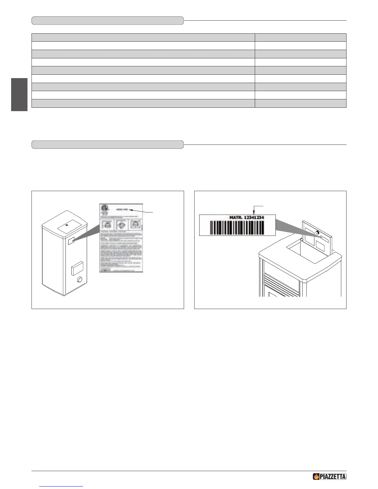 Every product is identied by a rating plate showing the model and the performance of the appliance as well as a plate giving the serial number.