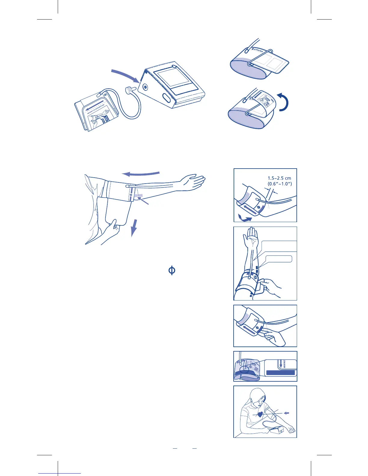 znalazła się około 1,5 do 2 cm powyżej wewnętrznej strony stawu łokciowego. Zaciśnij mankiet