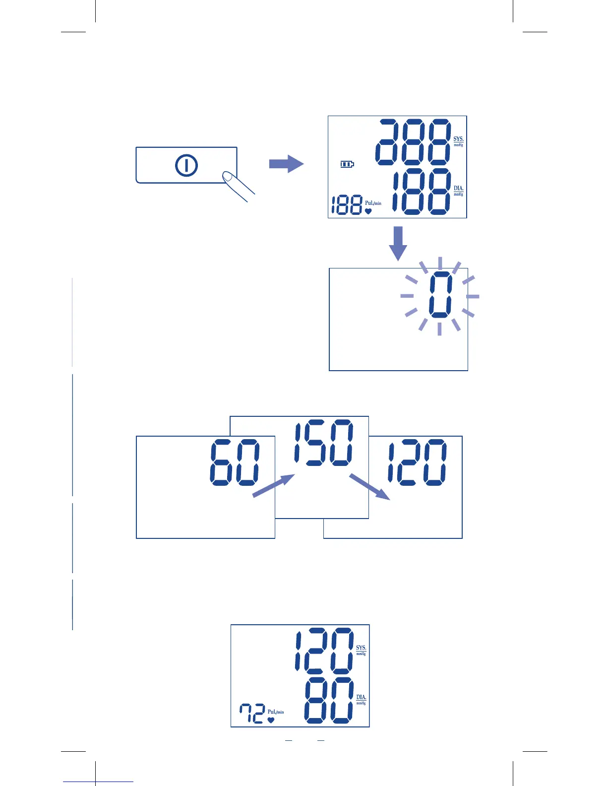 and a ashing “0” appears. The monitor is “Ready to Measure” and will automatically inate the cuff