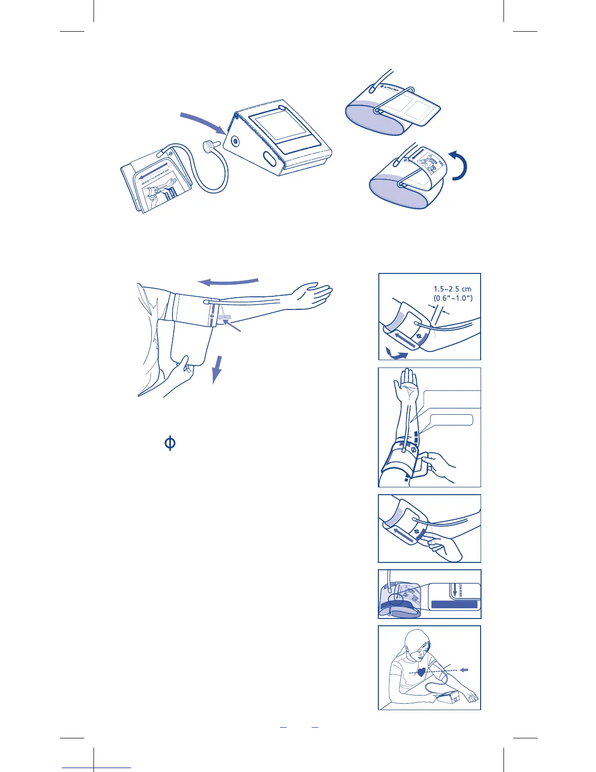 bord du brassard à environ 1,5-2,5 cm au-dessus du creux du bras. Serrez le brassard en tirant son