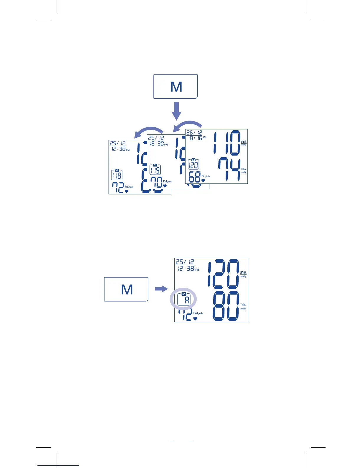 3. At the end of the measurement and before it switches off (after 4 minutes), by pressing the “M” key