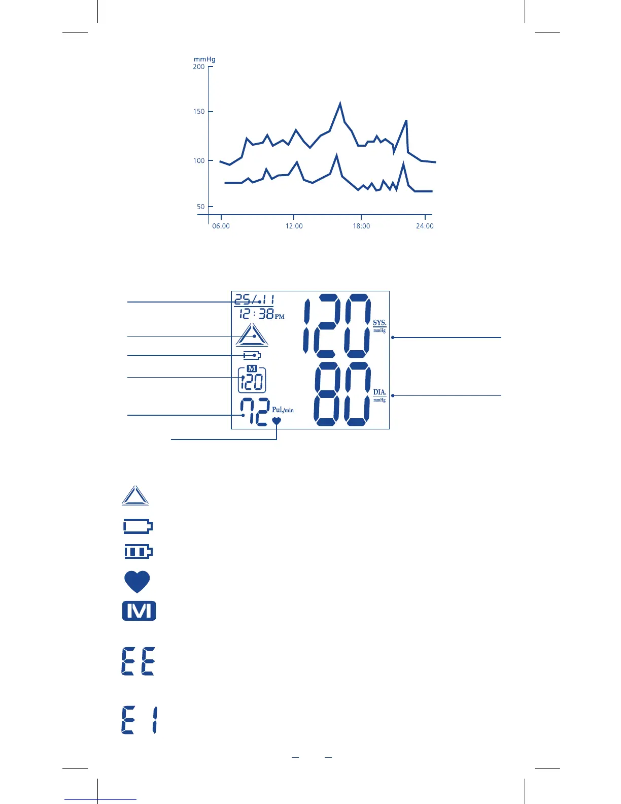 Bluthochdruckanzeige: Vergleicht die ermittelten Blutdruckwerte mit den Richtwerten.