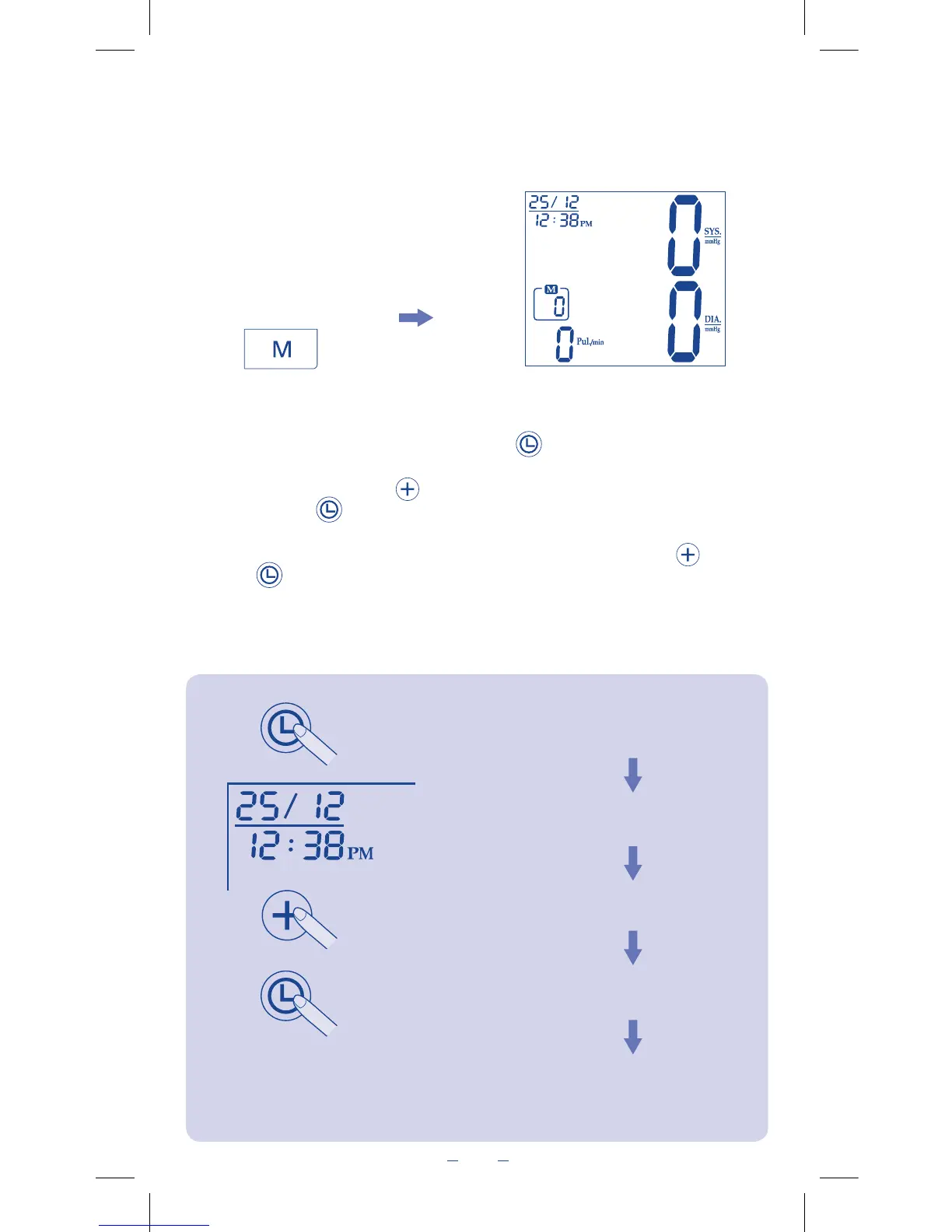 1. Para acertar a data e a hora no aparelho, prima a tecla