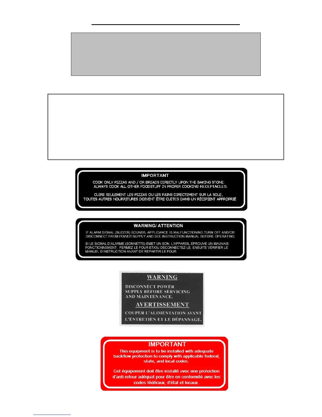 LABELS YOU WILL FIND ON YOUR OVEN: