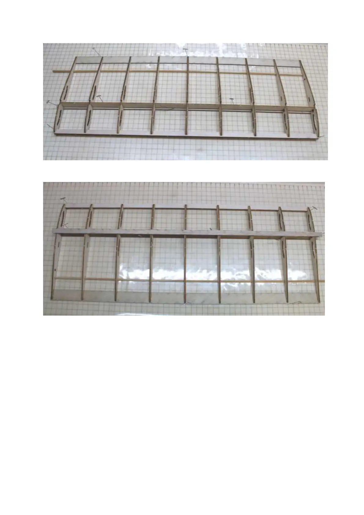 Glue in the upper main spar (balsa 10×3×510mm).
