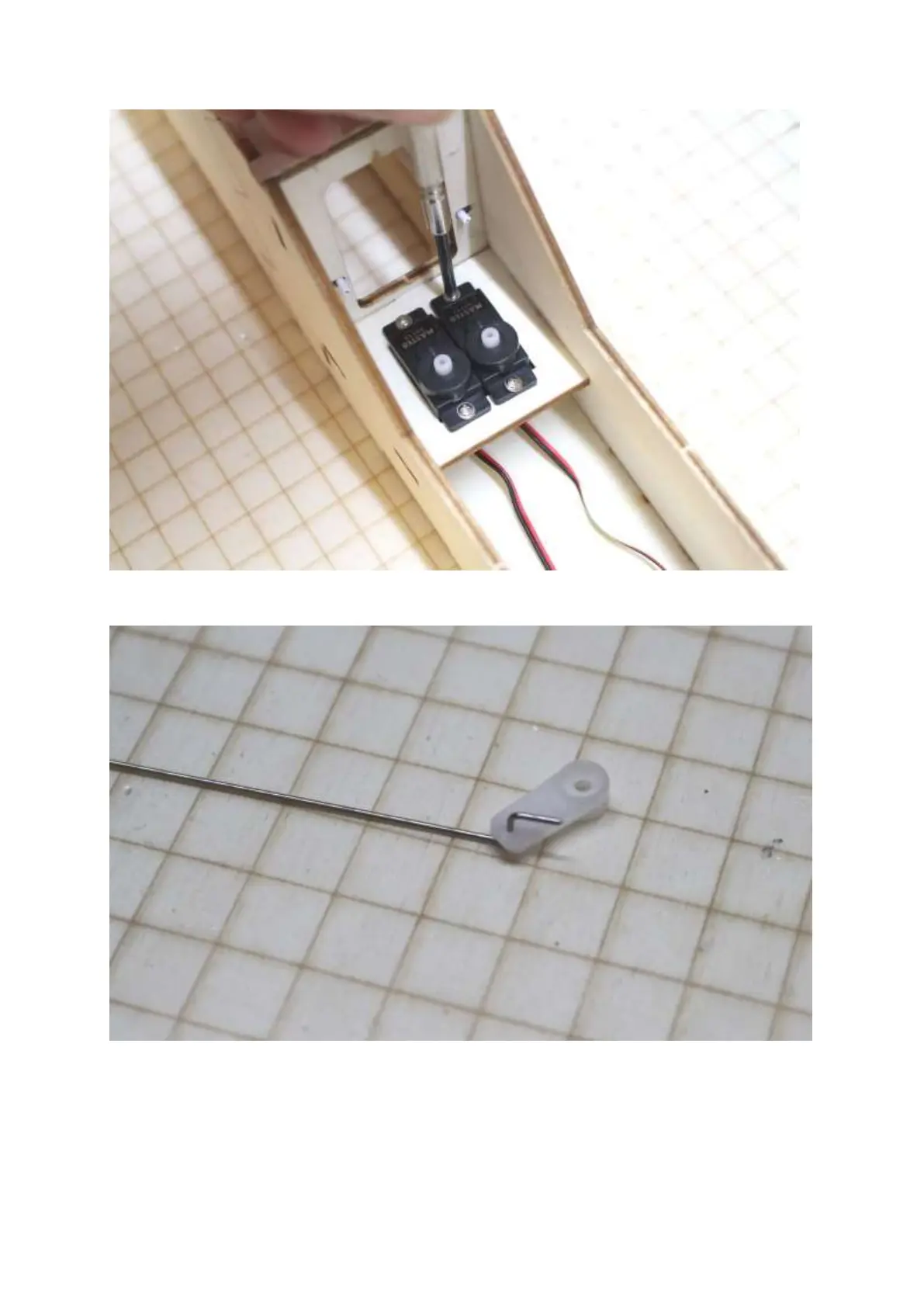 Bend the linkage wire (steel wire Ø0.8 mm) at one end in a Z-shape and attach it to the servo arm.