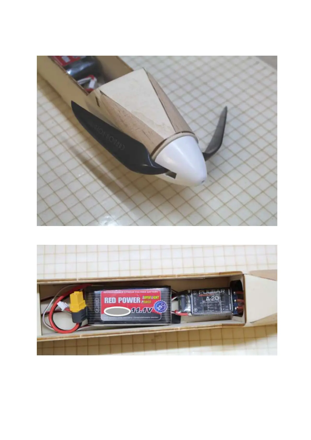 Complete the folding propeller and fasten it to the motor shaft.
