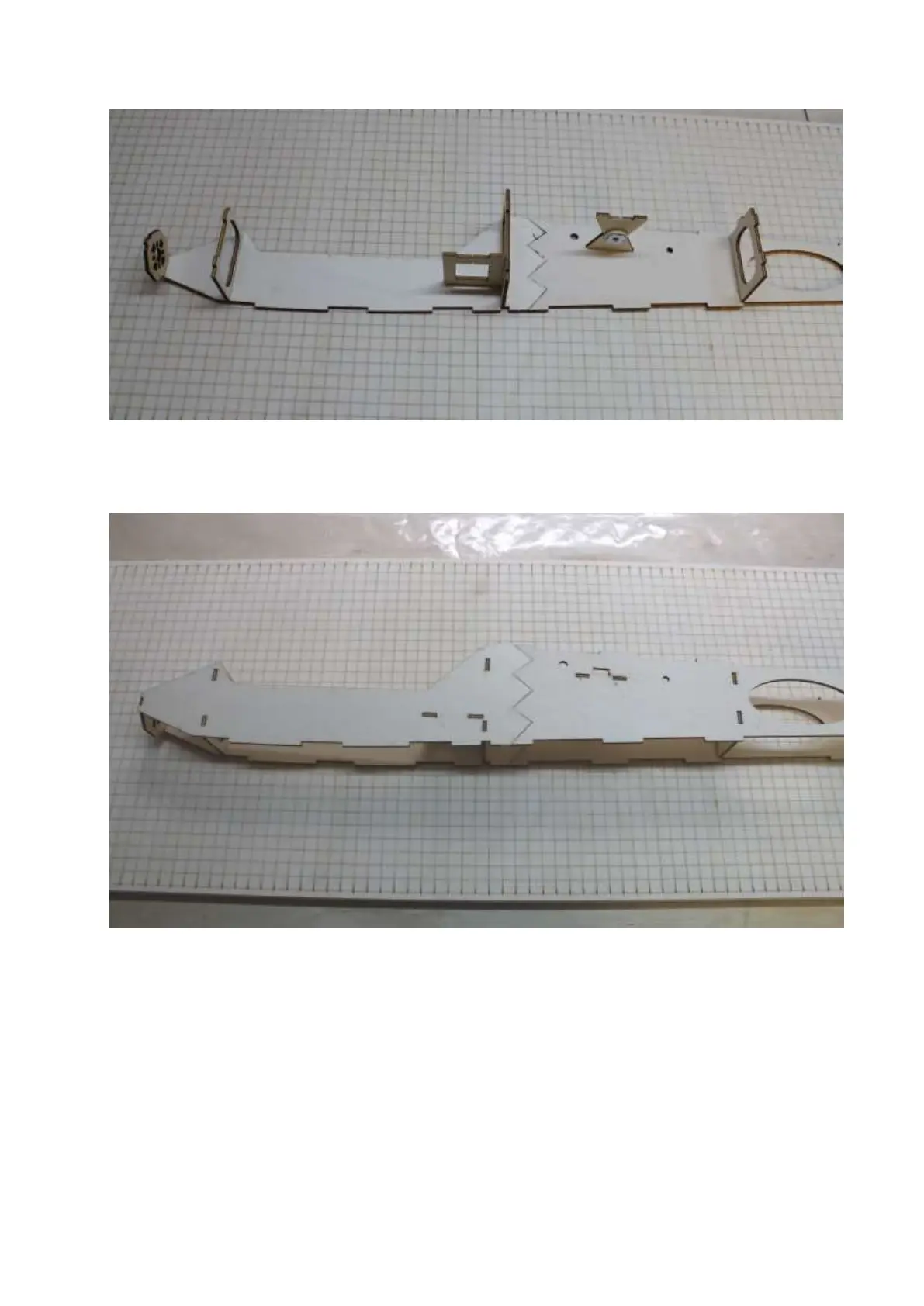 Lay the fuselage side panel flat. Glue the motor bulkhead (F1), bulkhead (H3), servo board (H6) together with bulkhead