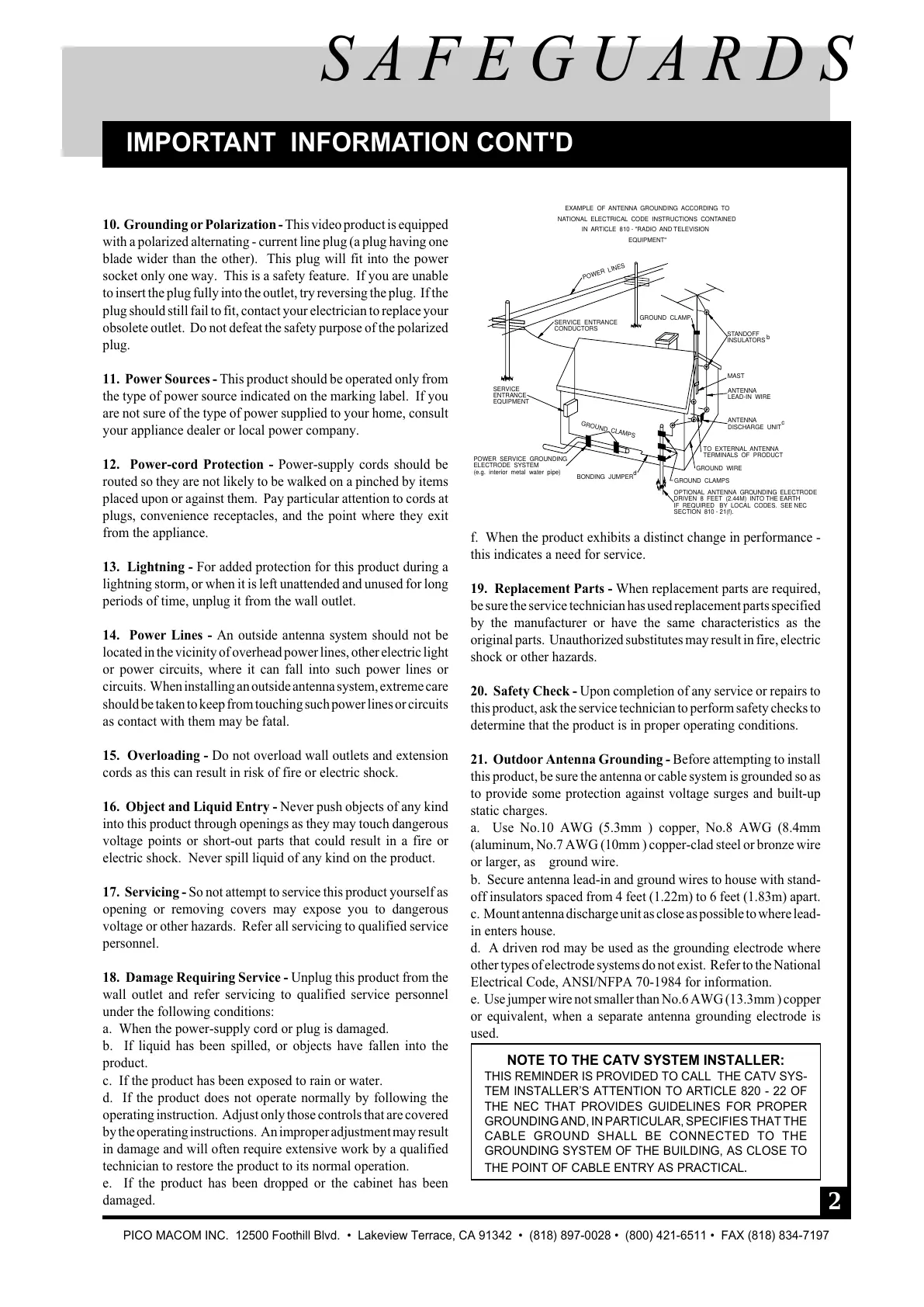 10. Grounding or Polarization - This video product is equipped