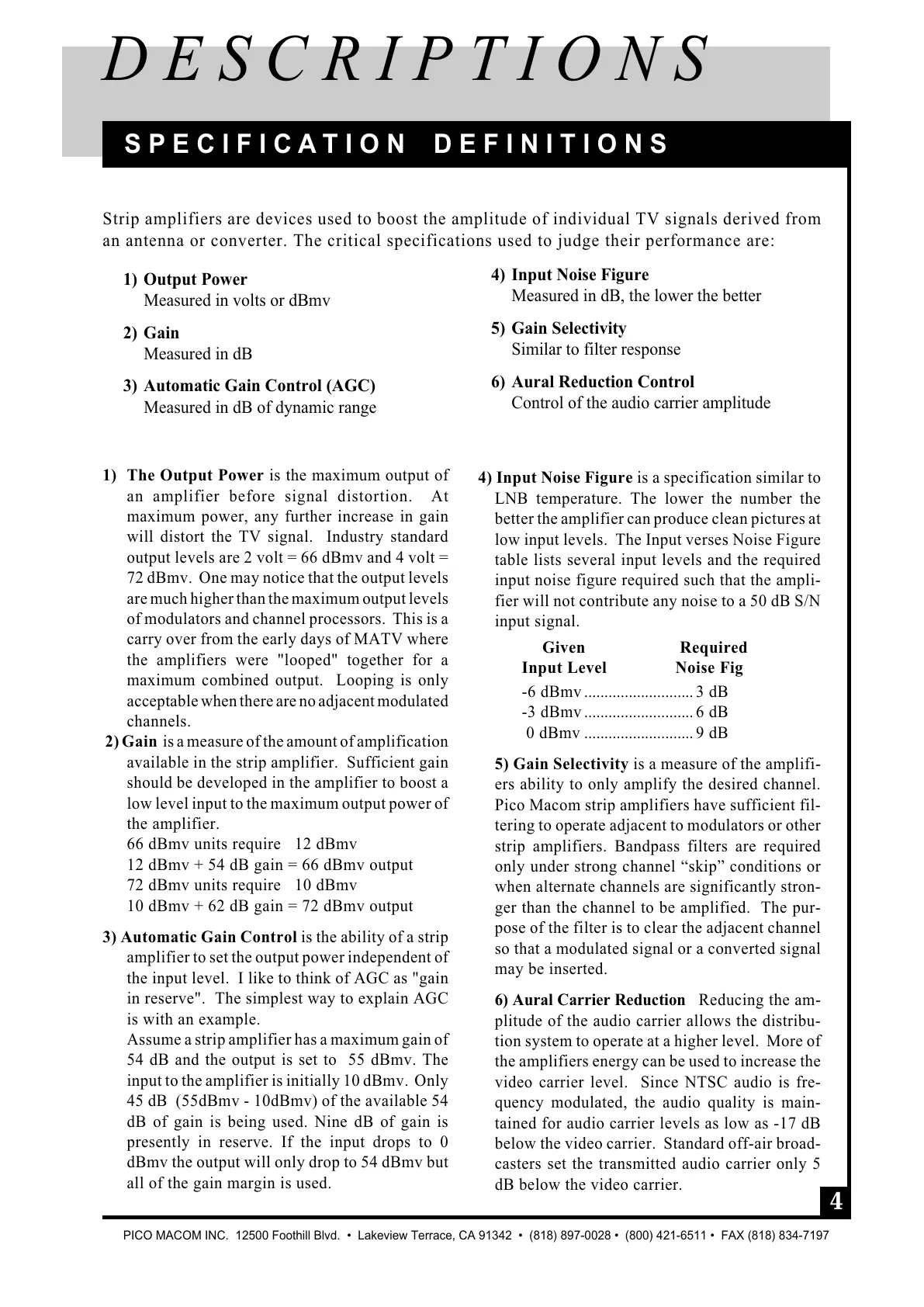 PICO MACOM INC. 12500 Foothill Blvd. • Lakeview Terrace, CA 91342 • (818) 897-0028 • (800) 421-6511 • FAX (818) 834-7197