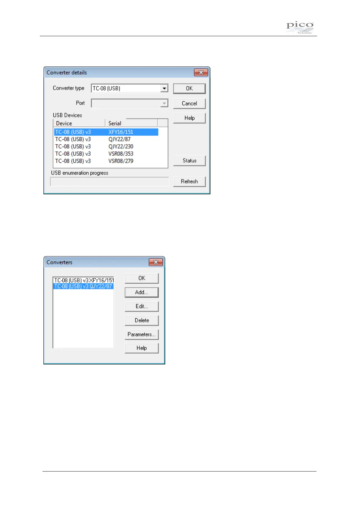 This will take you to the Converter Details box where you select TC-08 (USB). PicoLog