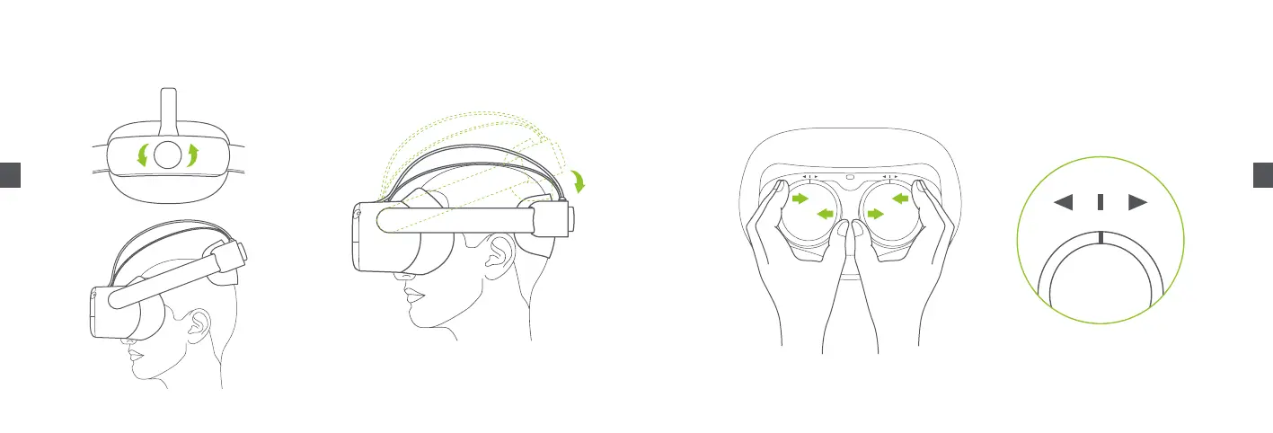 Para asegurarse la claridad en su imagen, es necesario alinear las lentes a la distancia entre sus pupilas (IPD) Hay tres ajustes de conguración de