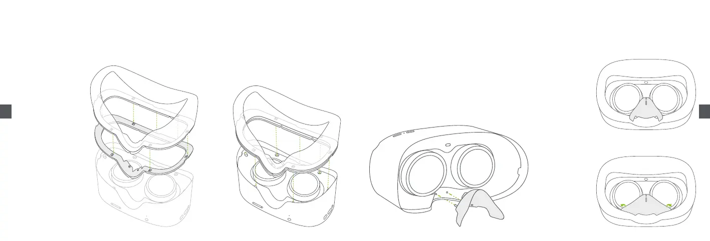 En cas de collision avec le verre du casque ou de pression sur l'arête du nez, suivez les instructions sur l’image pour installer l'espacement pour