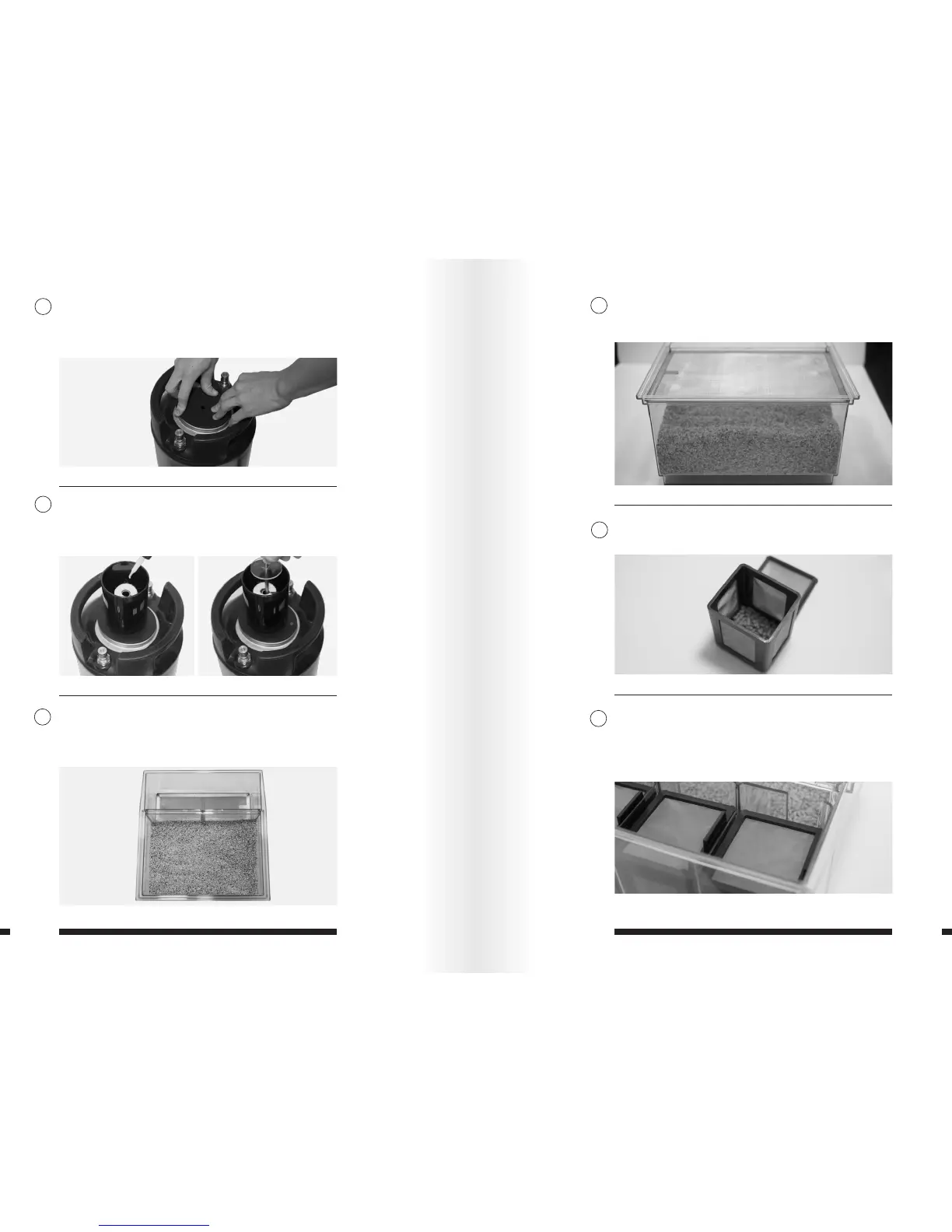 step filter, resting on the bottom ledge. Place each cage into