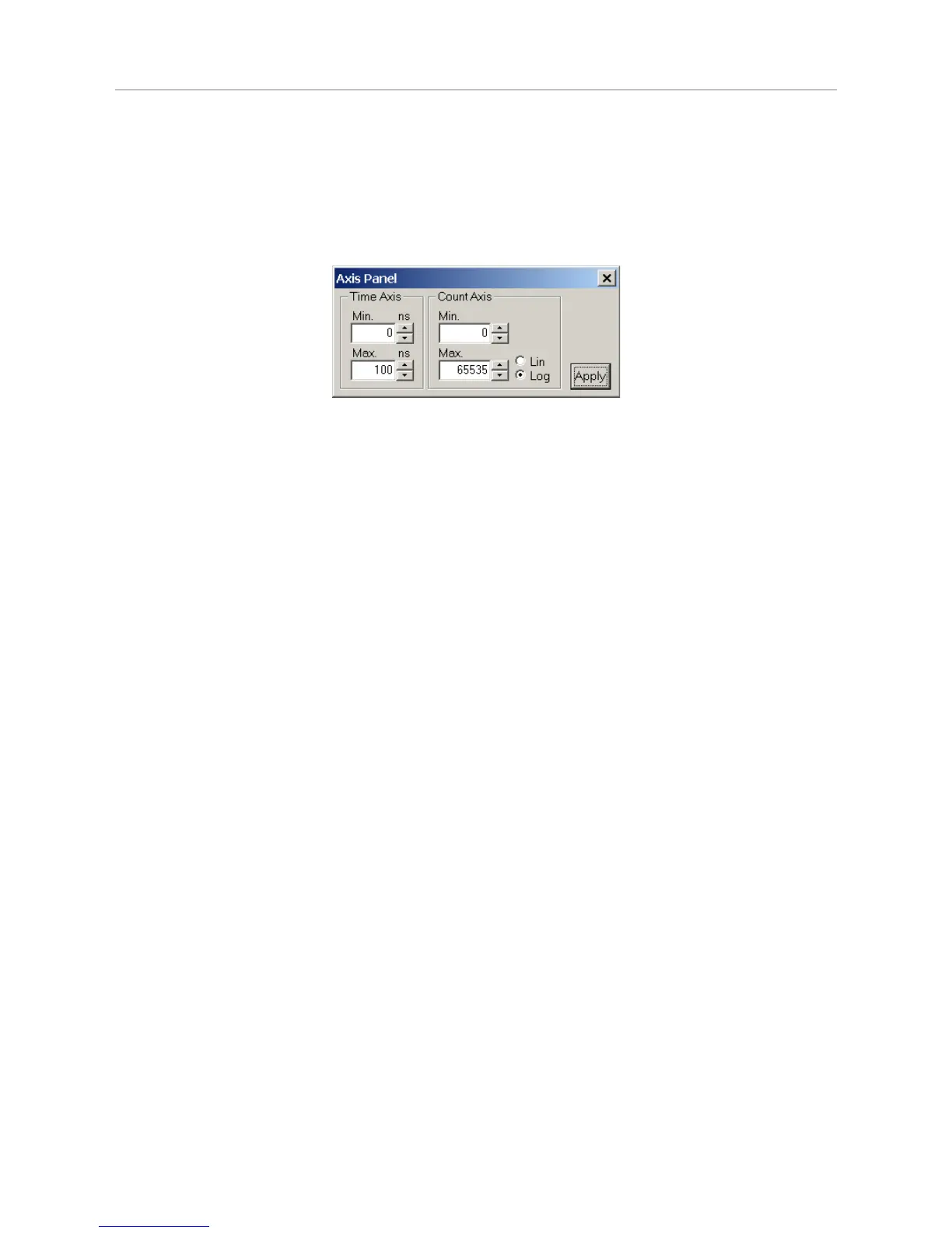 The axis settings panel is a dialog box for setting the axis range for the histogram display in the main window. It
