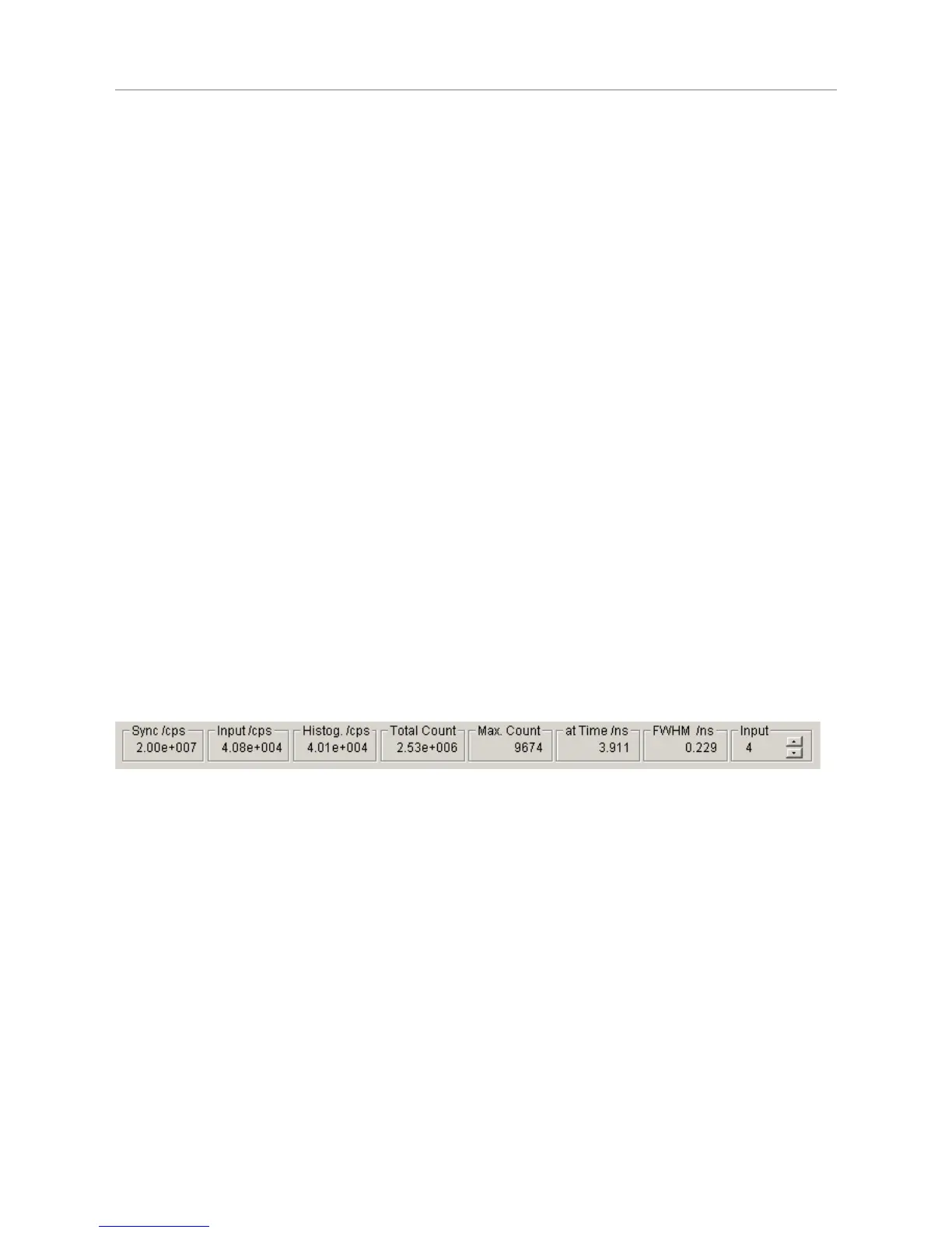 The other meters show the histogramming rate, the total count in the histogram, the maximum (peak) count