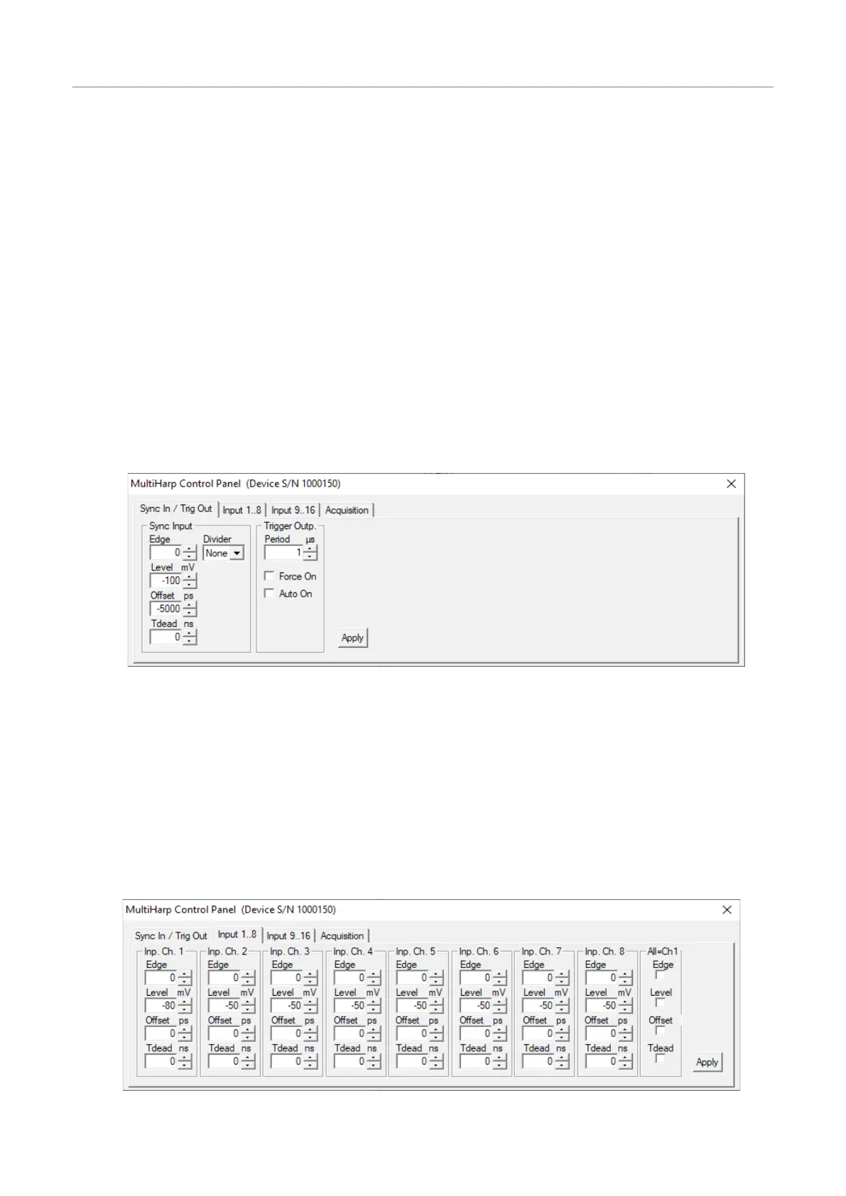 ControlsforchannelsthatdonotexistintheMultiHarpbeingusedwillremaindisabled(gray).