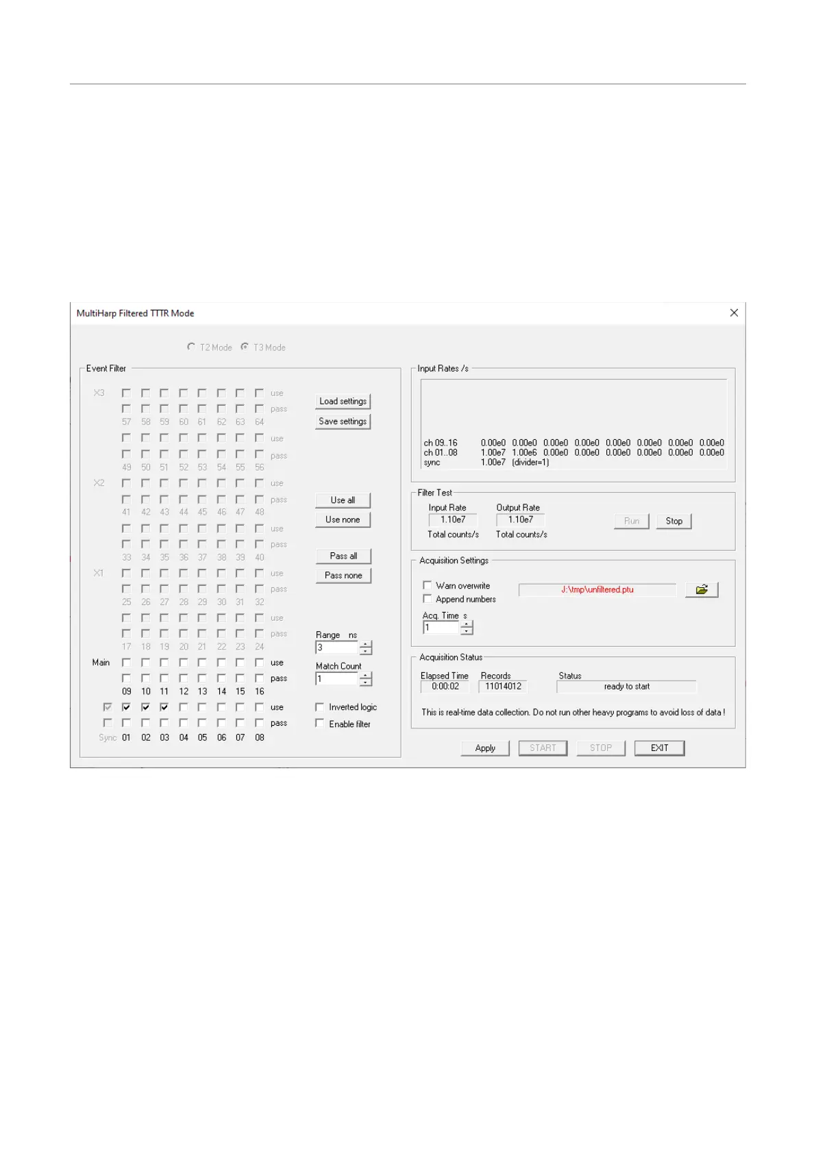 completionofthemeasurementweleavethefilteredTTTRmodedialogbyclickingEXIT.Whenthesoftwareis