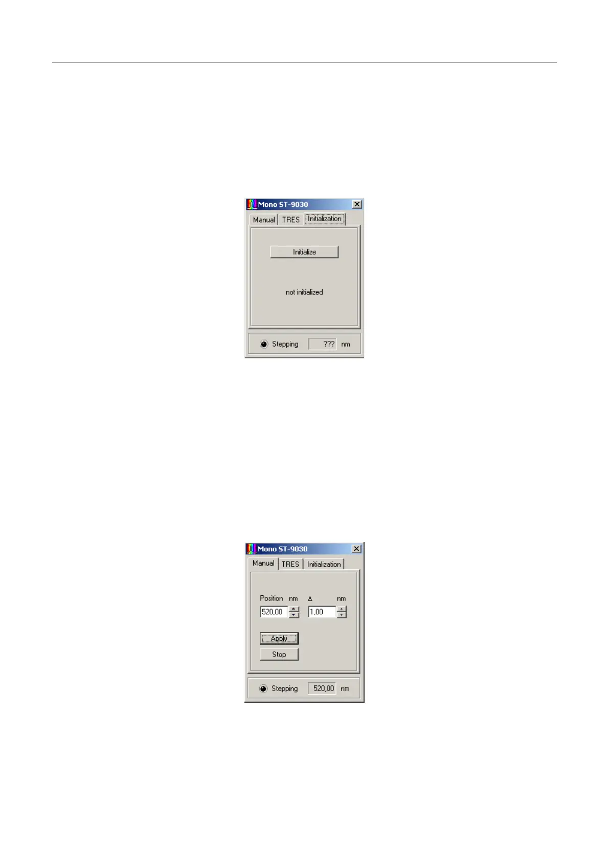 Beforeuse,themonochromatormustbeinitialized.Thismeans,ithastoseekitsmechanicalreferenceposition