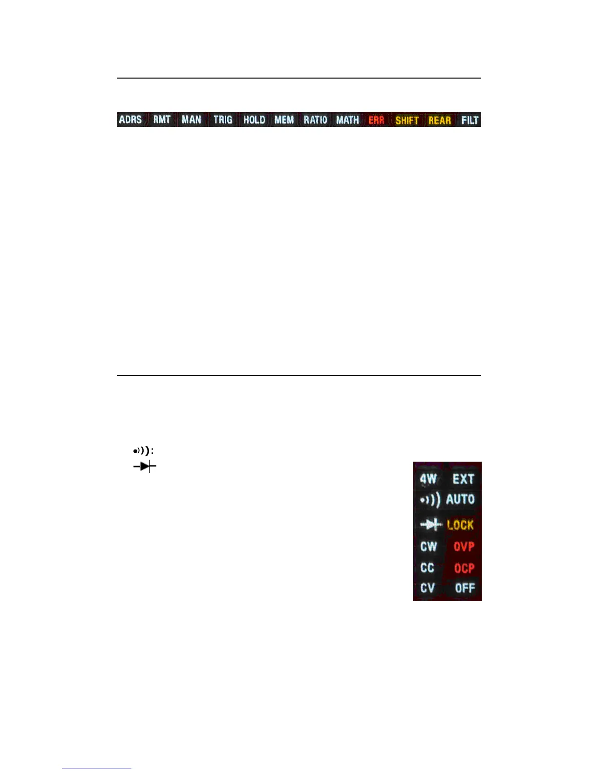 4W: Indicates 4 –wire mode is selected for resistance measurement.