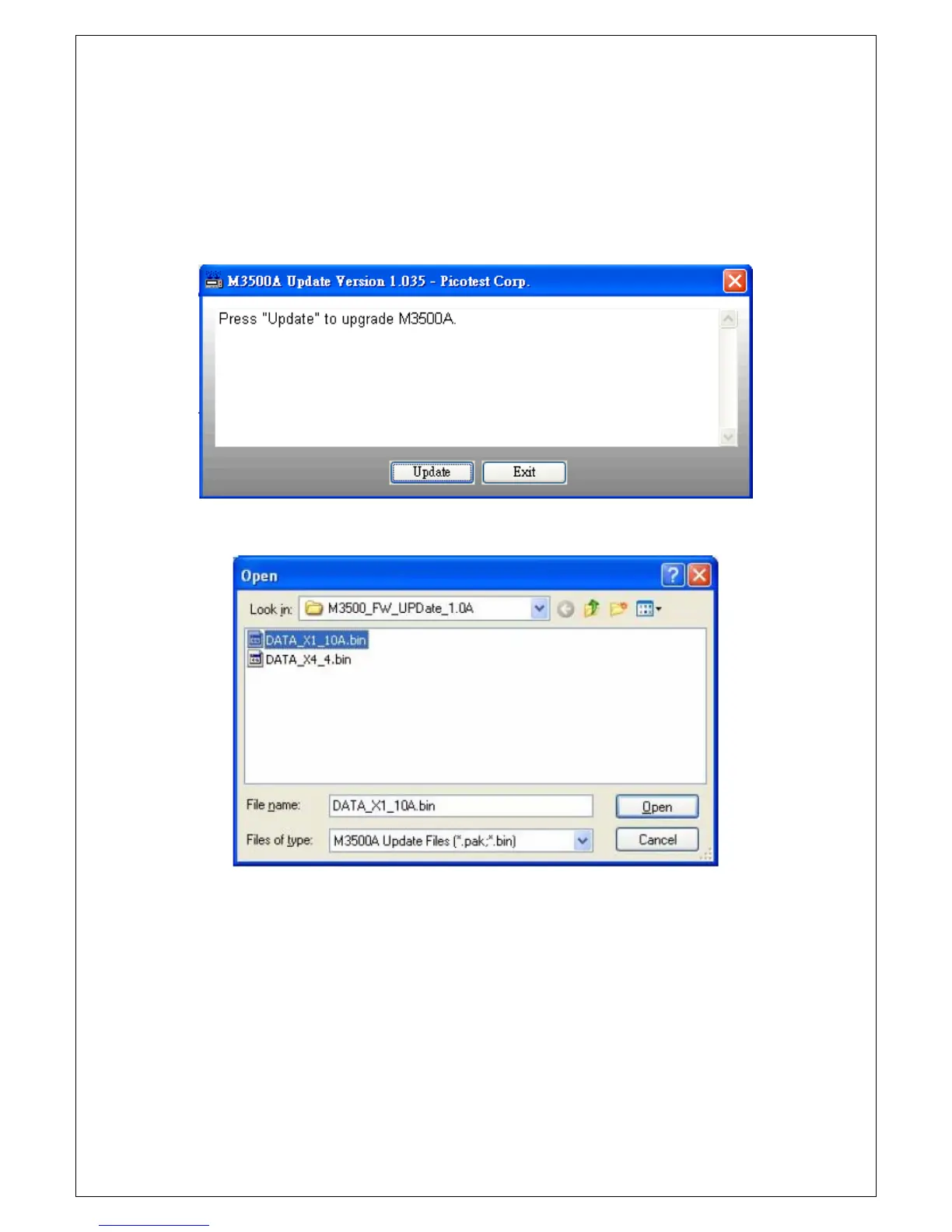 Connect your M3500A to PC via USB cable. Execute DmmUpdate.exe, and