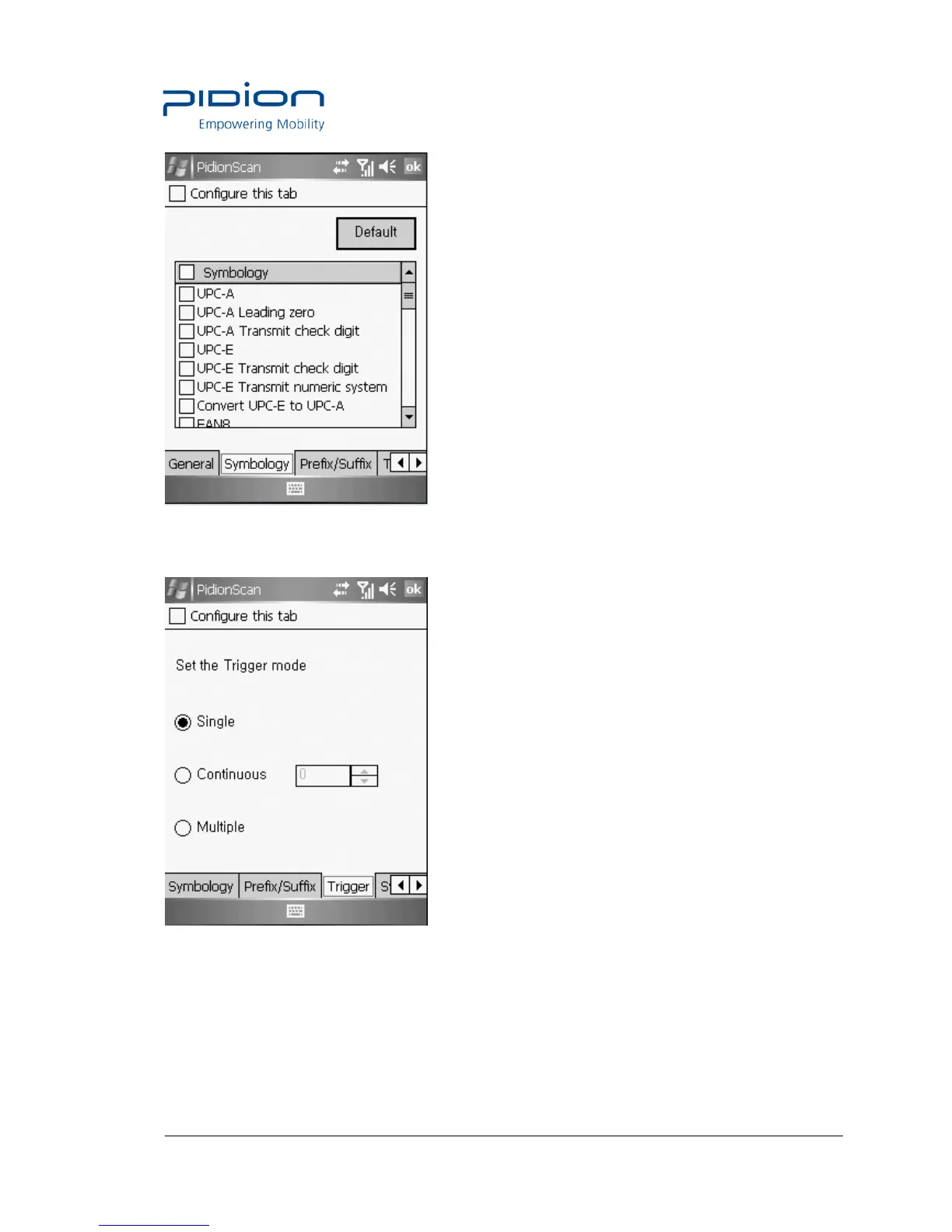 Single : Scans one barcode each time you press the Scan button once.