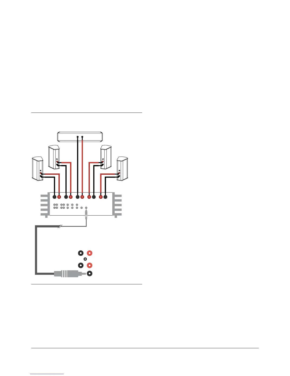 This connection configuration for 5.1 surround applications uses an AV receiver with a separate subwoofer