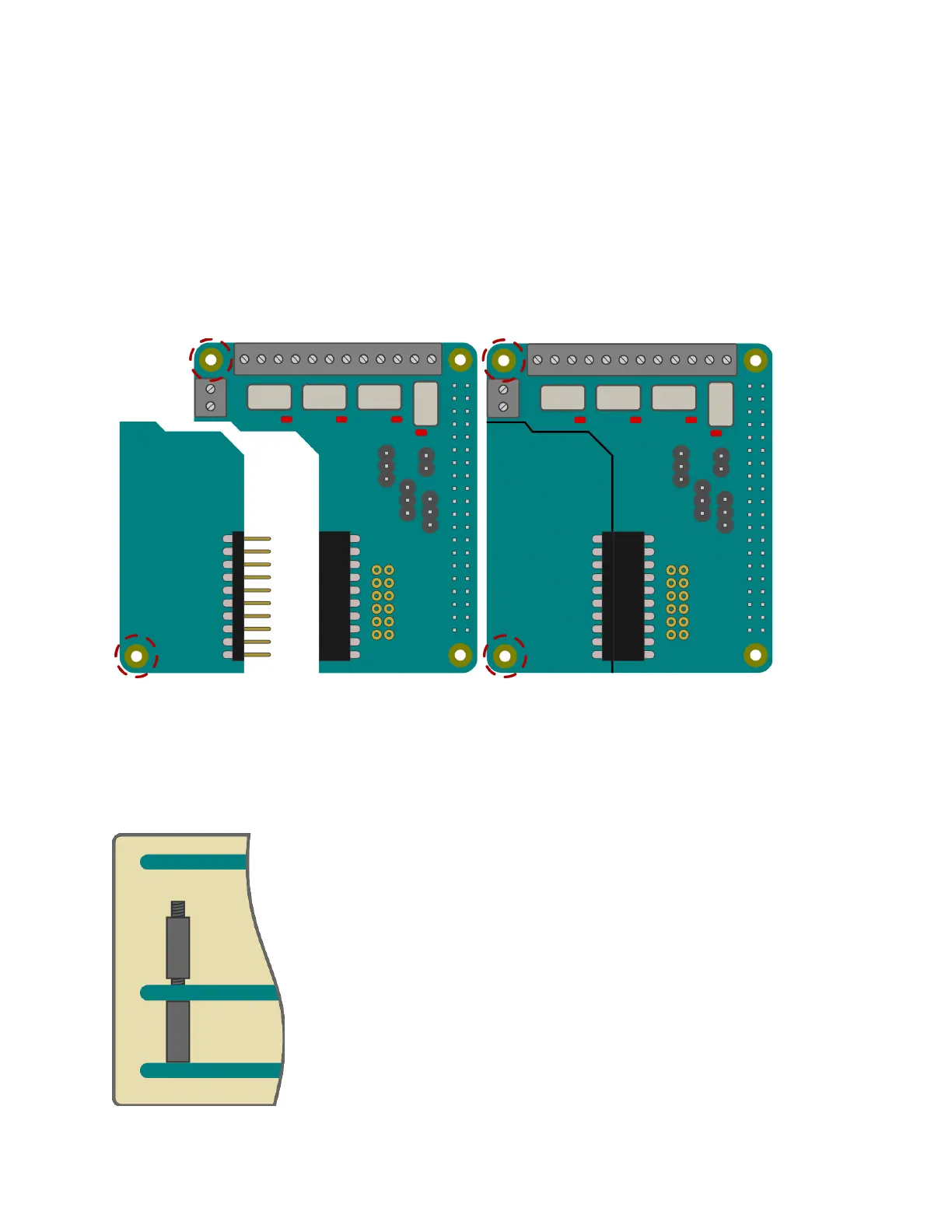 Relay+s, fit the spacers between the boards before fitting on the