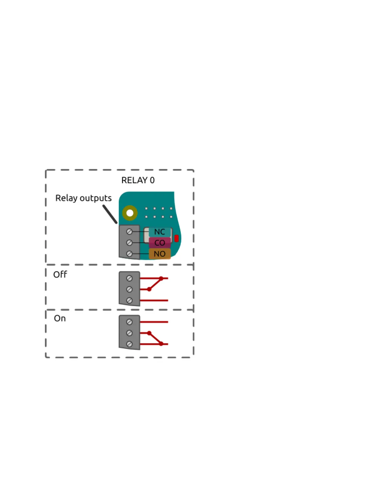 On PiFace™ Relay+ there are 4 relays. Each relay is connected to 3 screw terminals. Their