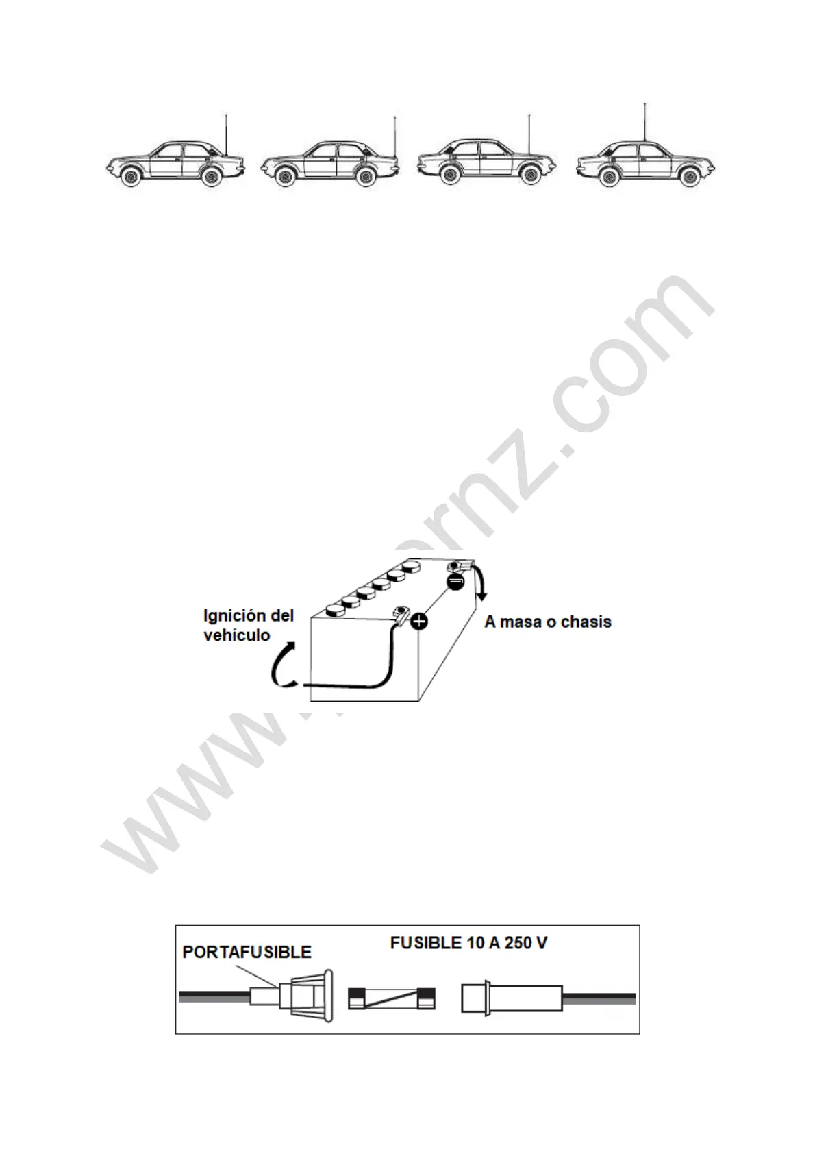 una batería de 24 Vcc. La batería del vehículo de 13.8 Vcc deberá tener la suficiente