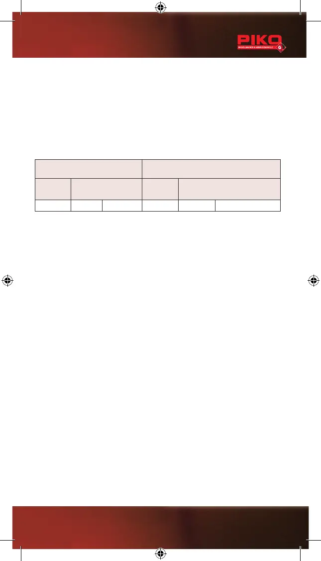 CV32 = Adresse ; CV51 / CV52 / CV75 = Sonderfunktionen. Die CV – Tabelle zeigt