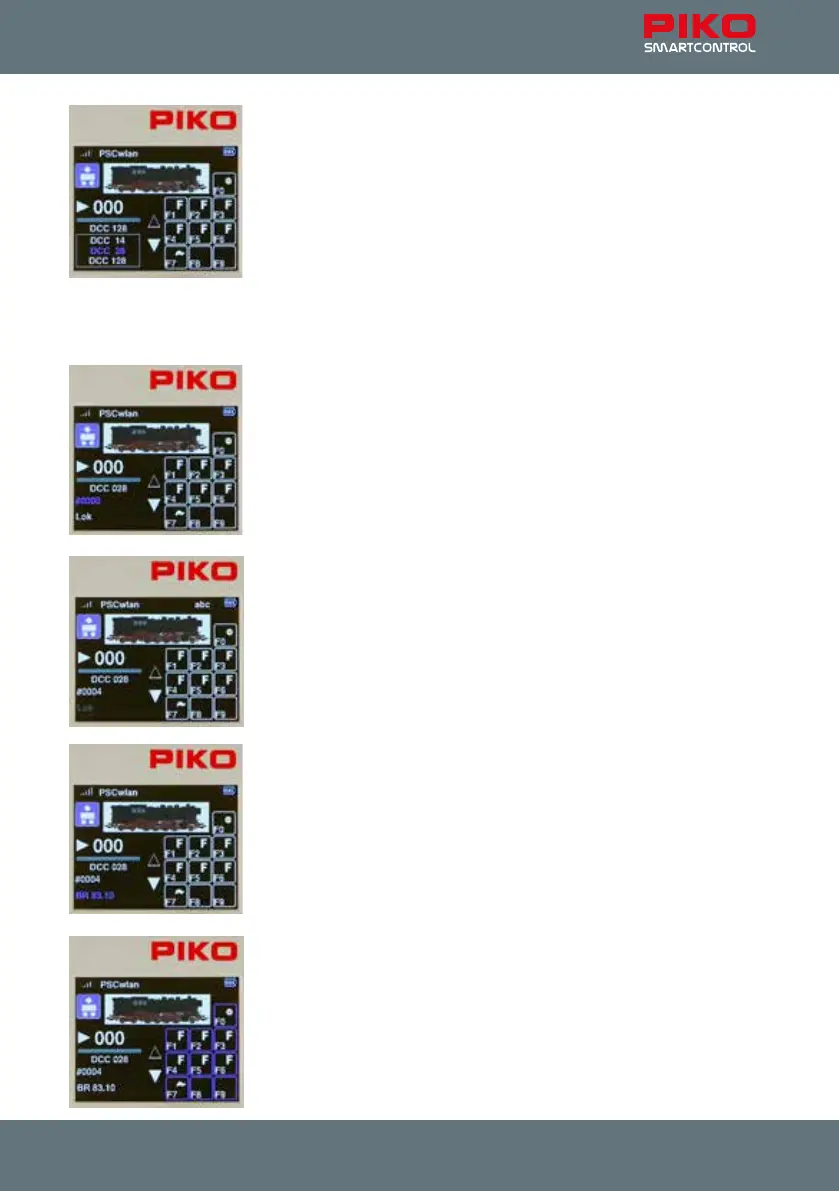 button. Then the desired locomotive name is entered using the keypad in the