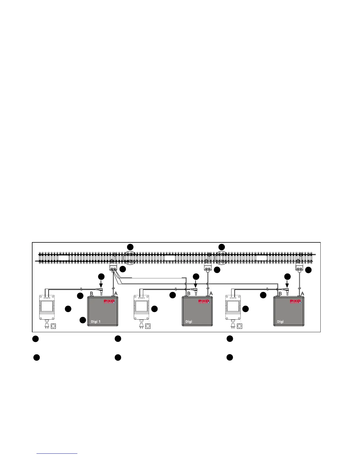 lated track sections, the PIKO Digi 1 must be connected to each of the PIKO Digi 2 units.