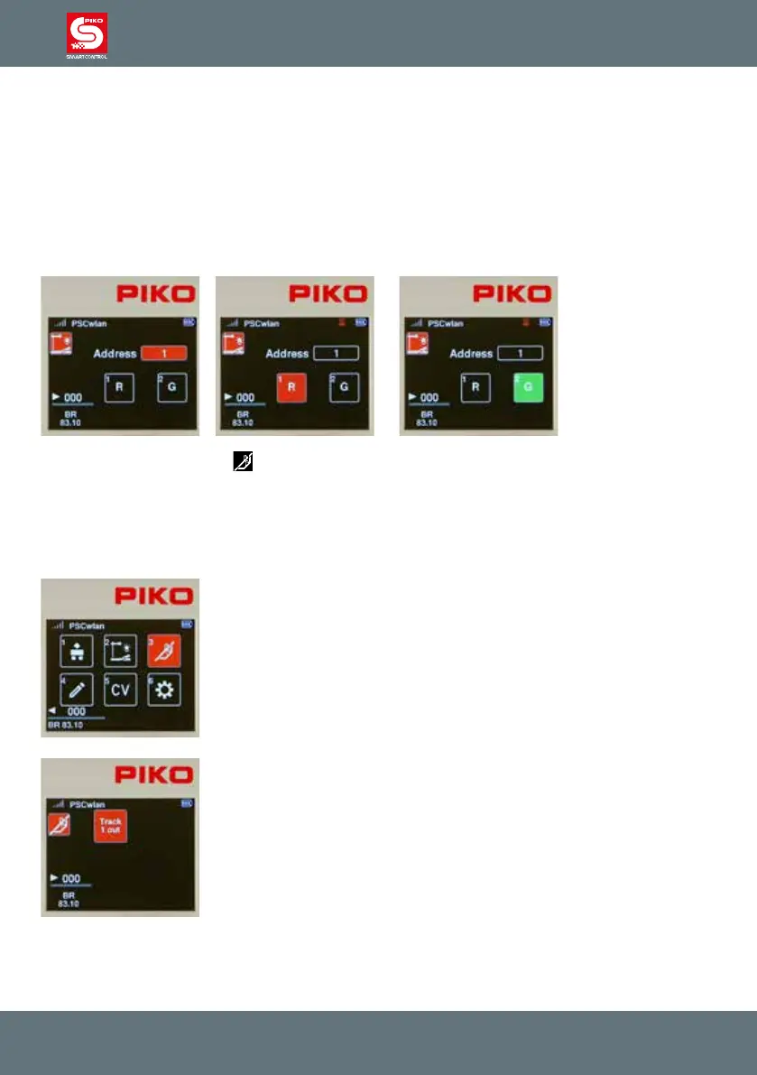 switch the accessory directly using buttons 1 (red) or 2 (green). The elds "R" and "G" can also be