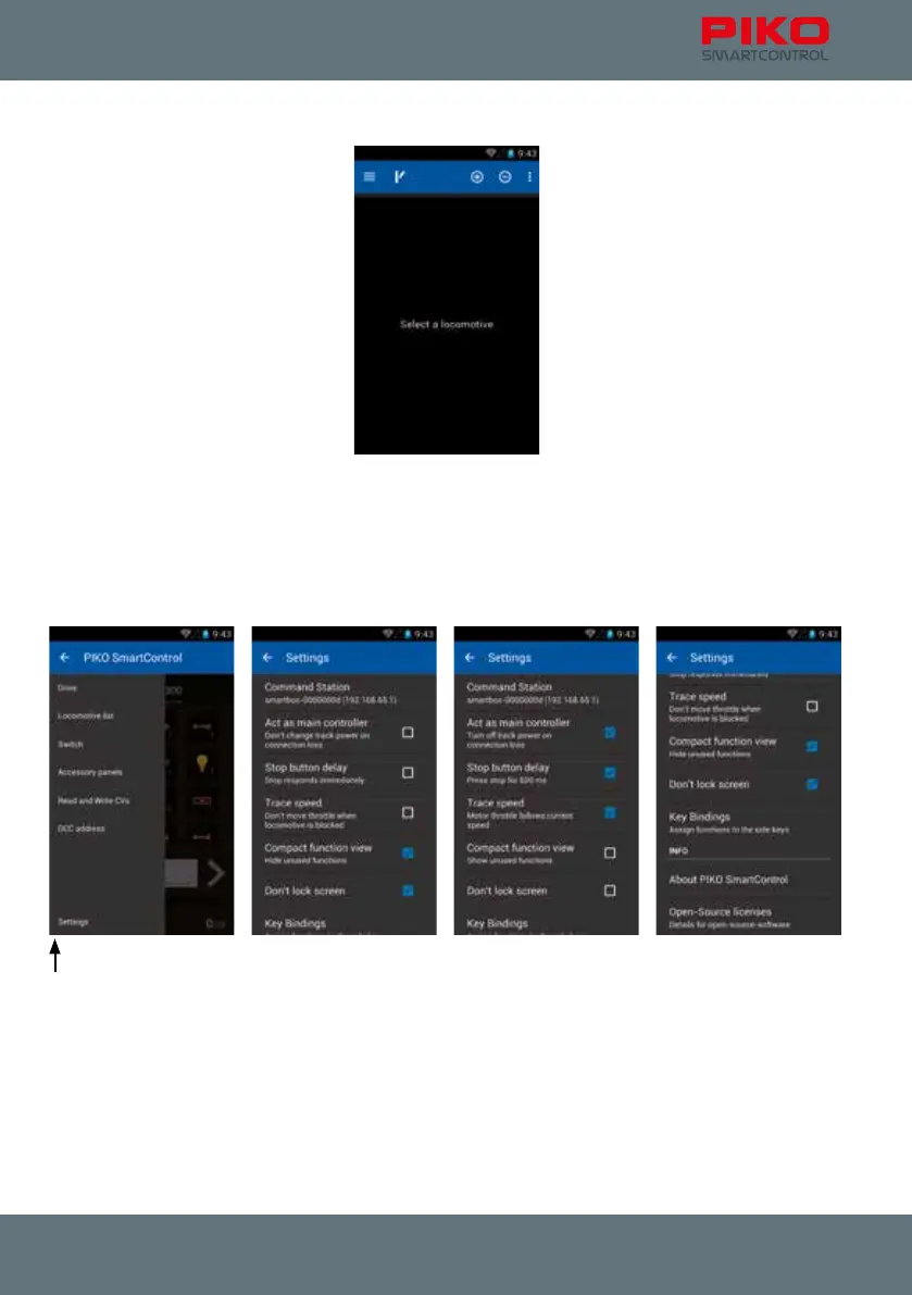 Via the Menu button you can access „Settings“. The following options can be found there: