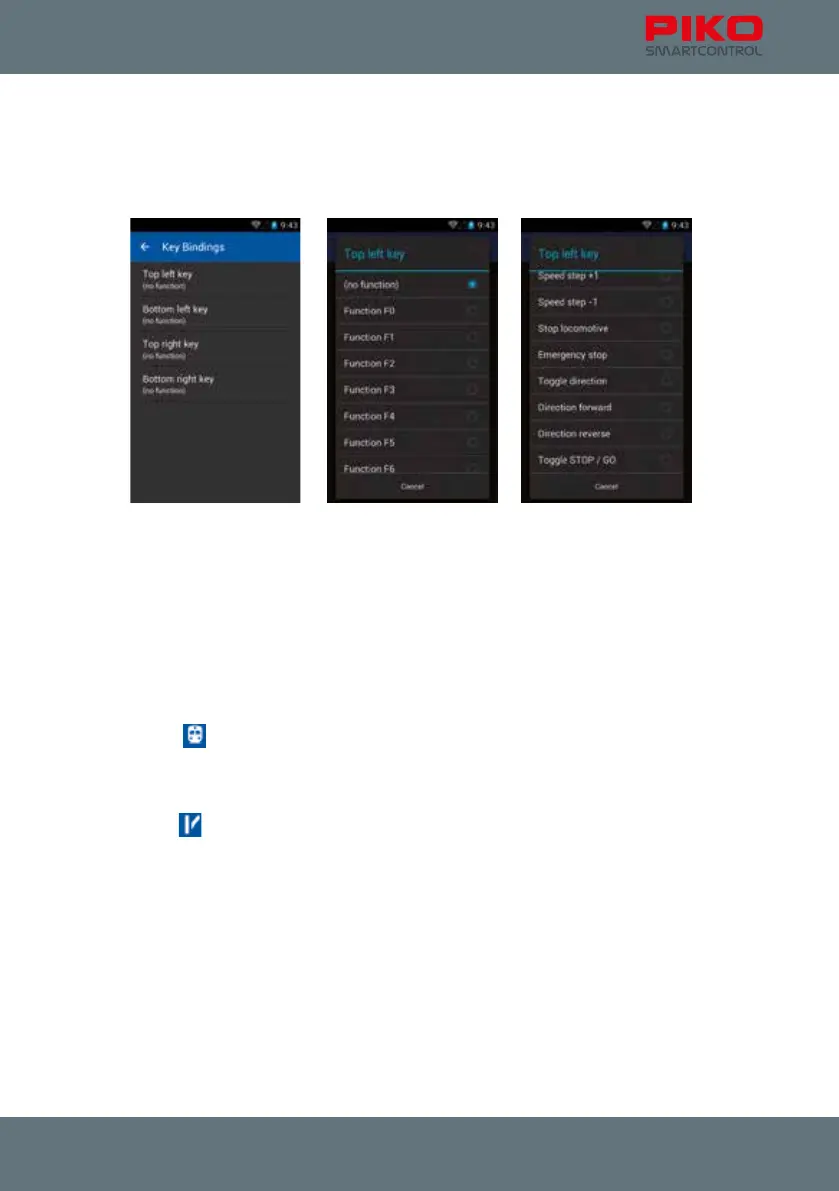 Here you have the option to assign functions to the four buttons along both sides of the PIKO
