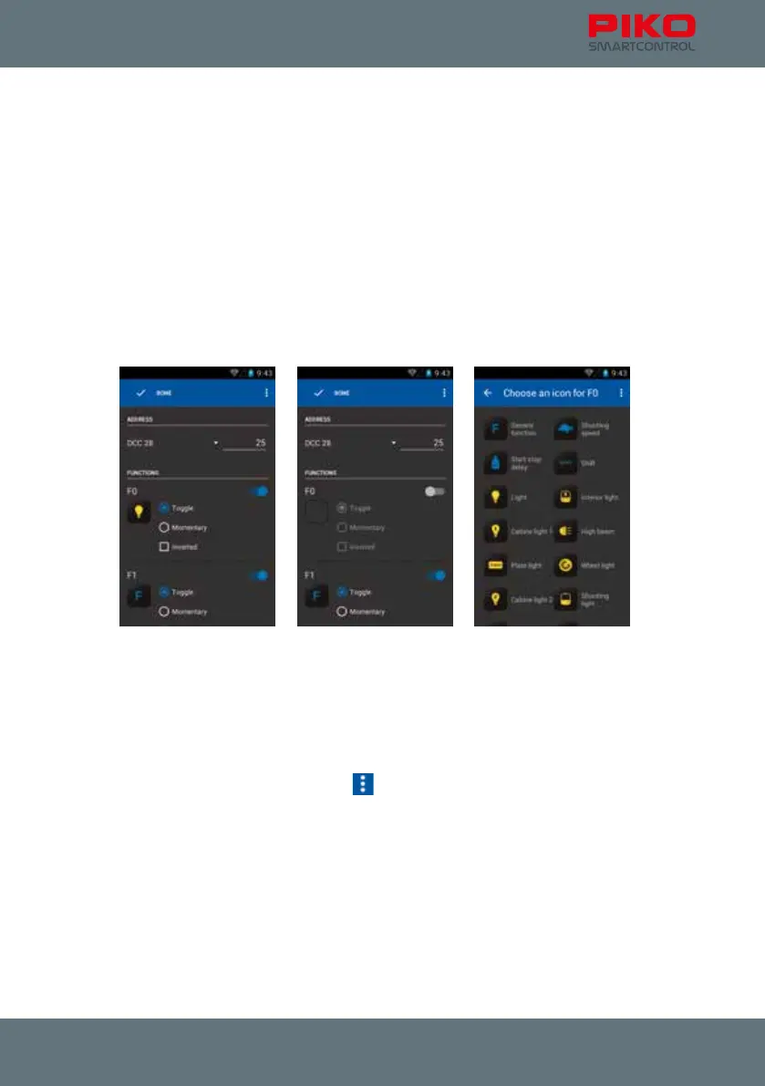 You can choose a suitable icon for each function. Just touch the function symbol („F“) and a list with all
