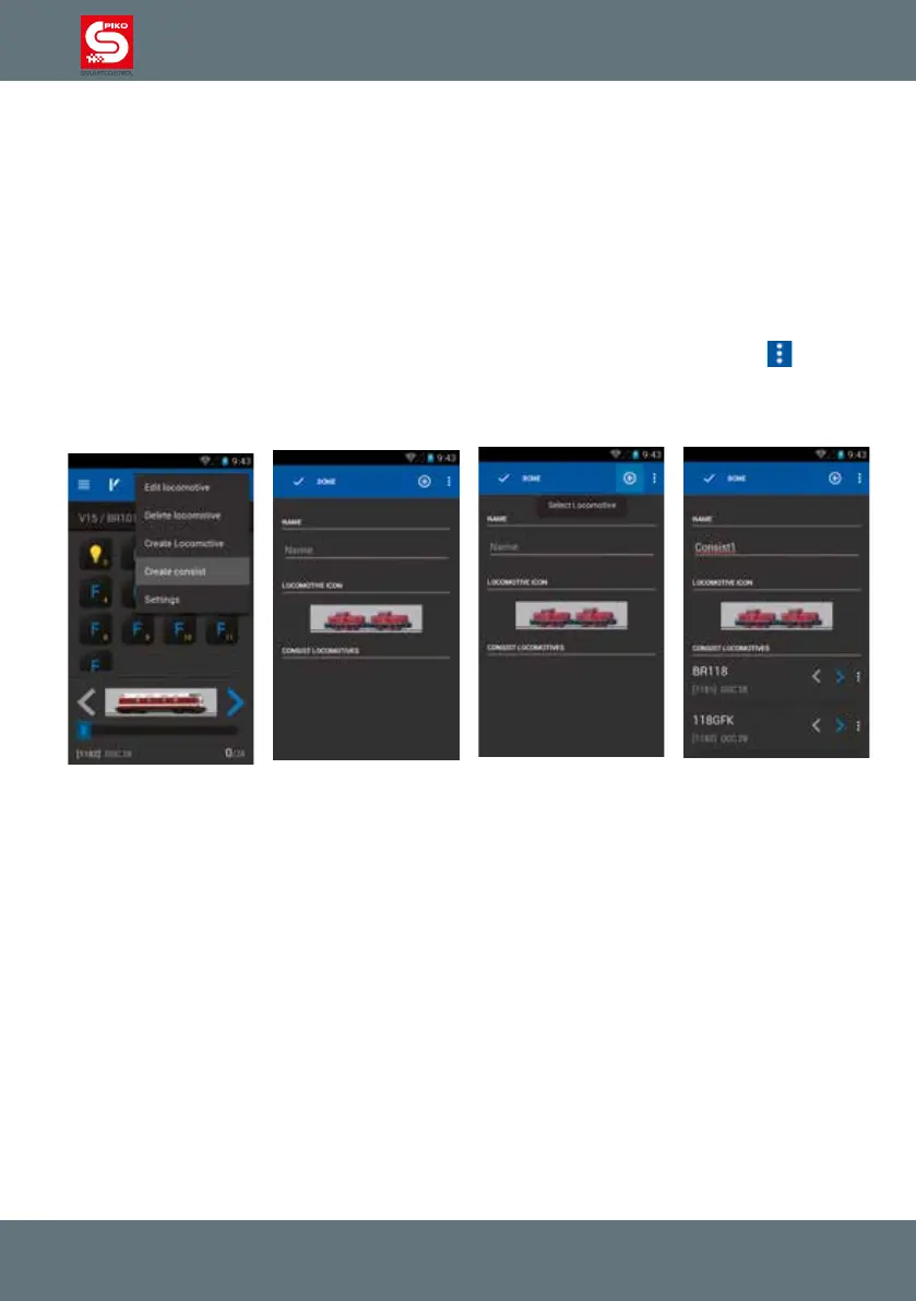 To add locos to the consist, please press the “plus”-symbol in the upper right corner of the screen.