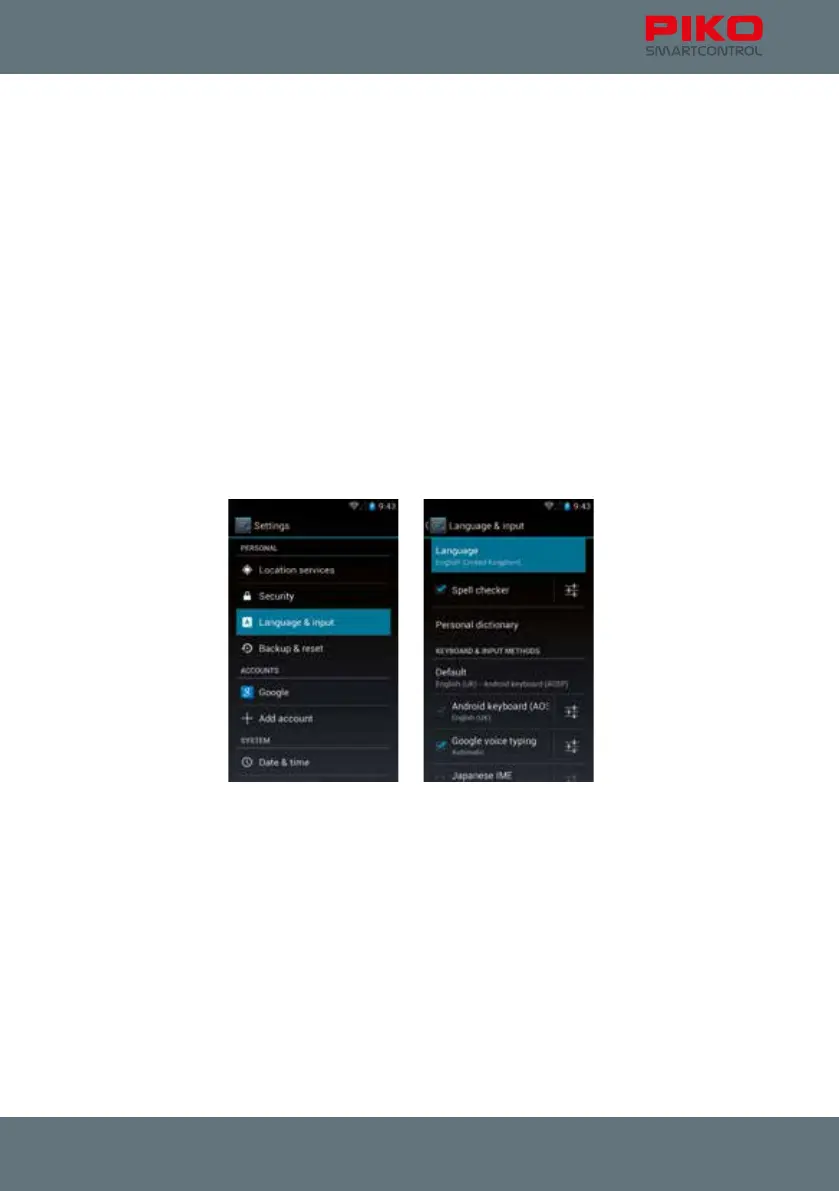 look for the „Personal“ menu. There you will nd “Language and Input”.