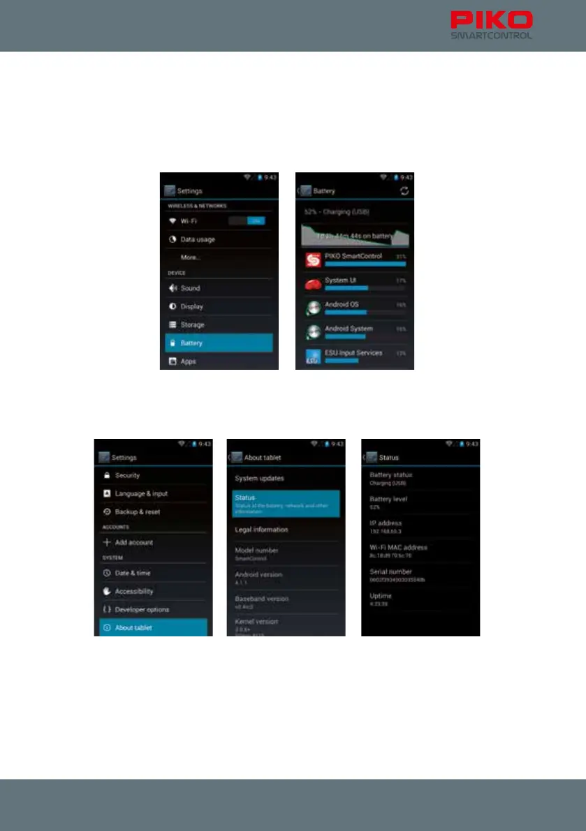 Here you can nd useful information like installed versions or WiFi mac addresses.