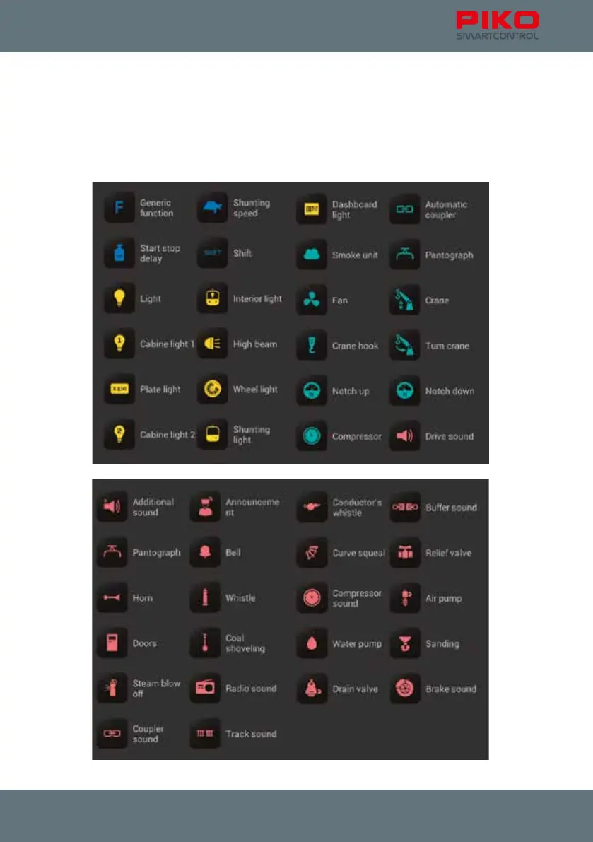 PIKO SmartControl - Function Symbols Guide; Color-Coded Function Symbol Categories