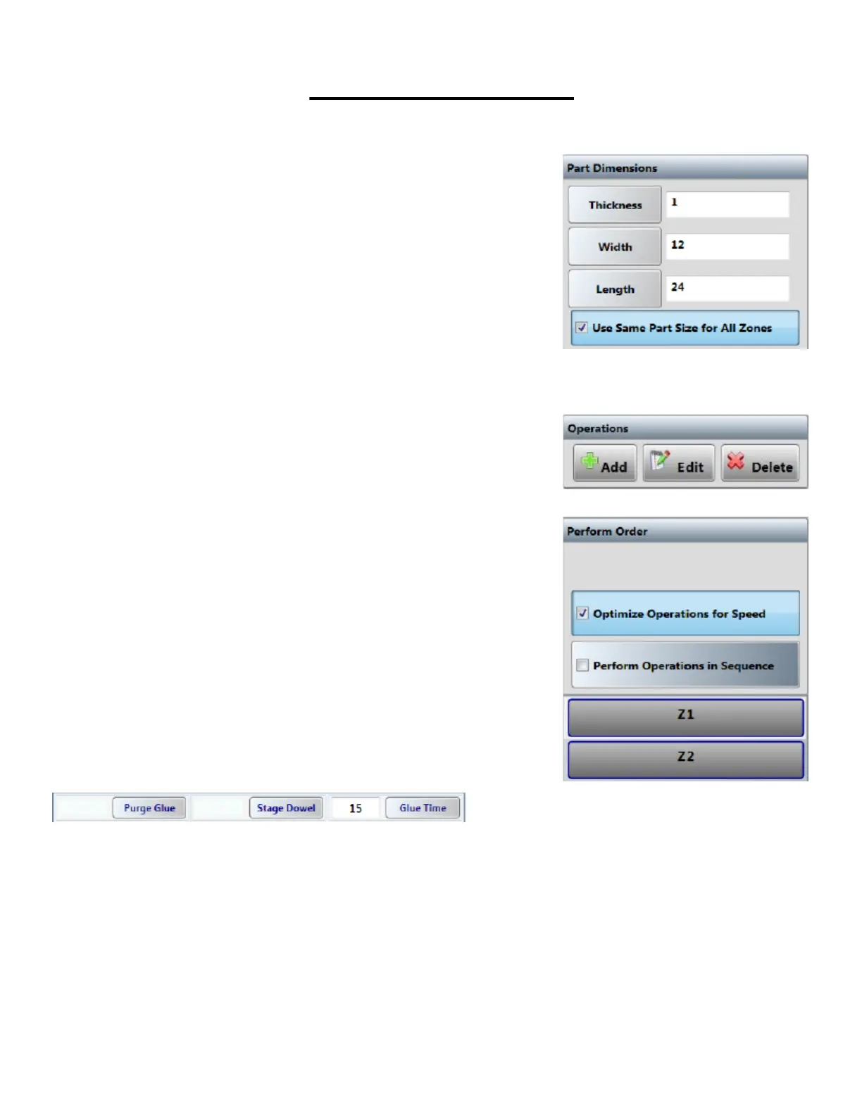 Part Dimensions: This is where the operator will enter the di-