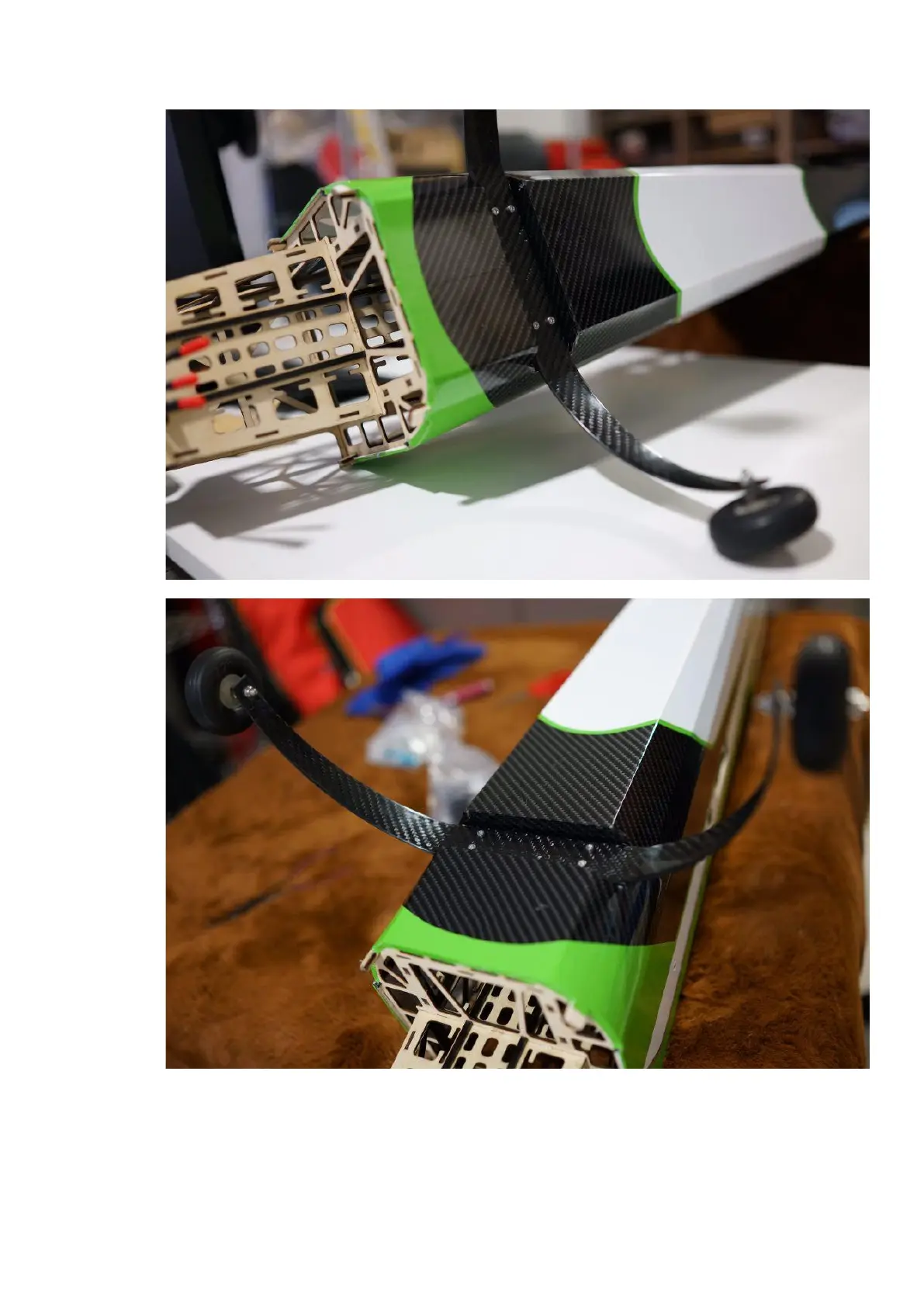 Screw the wheel axles on to the landing gear, and then slide on the wheels and