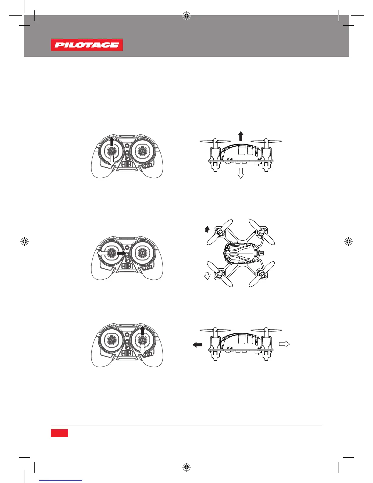 Rudder (Collective Torque Yaw) rotates your quadcopter’s fuselage Left / Right.