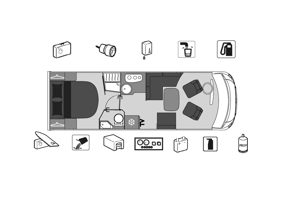 Garage space Wastewater tank Cassette toilet Control panel Battery