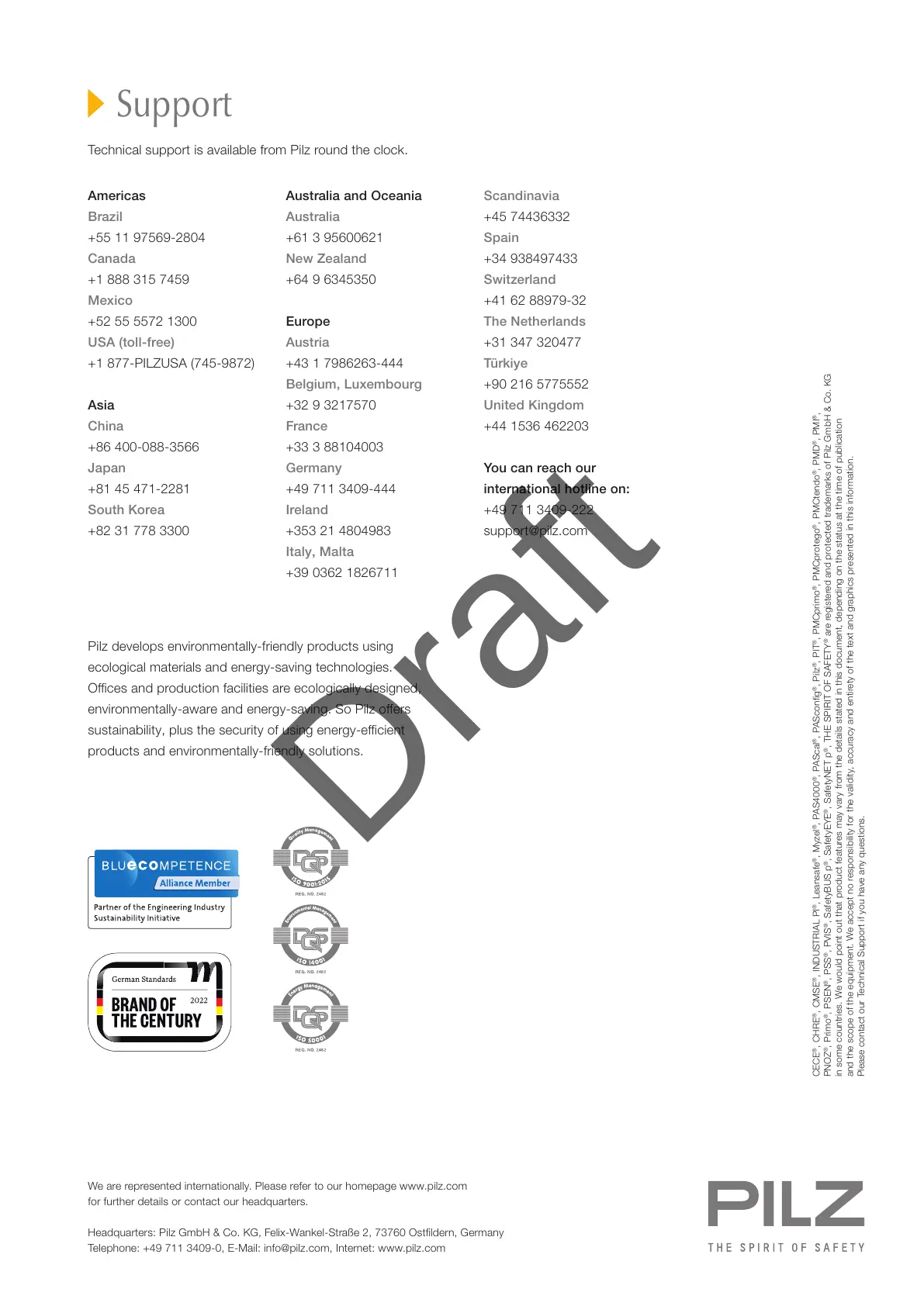 Headquarters: Pilz GmbH & Co. KG, Felix-Wankel-Straße 2, 73760 Ostfildern, Germany
